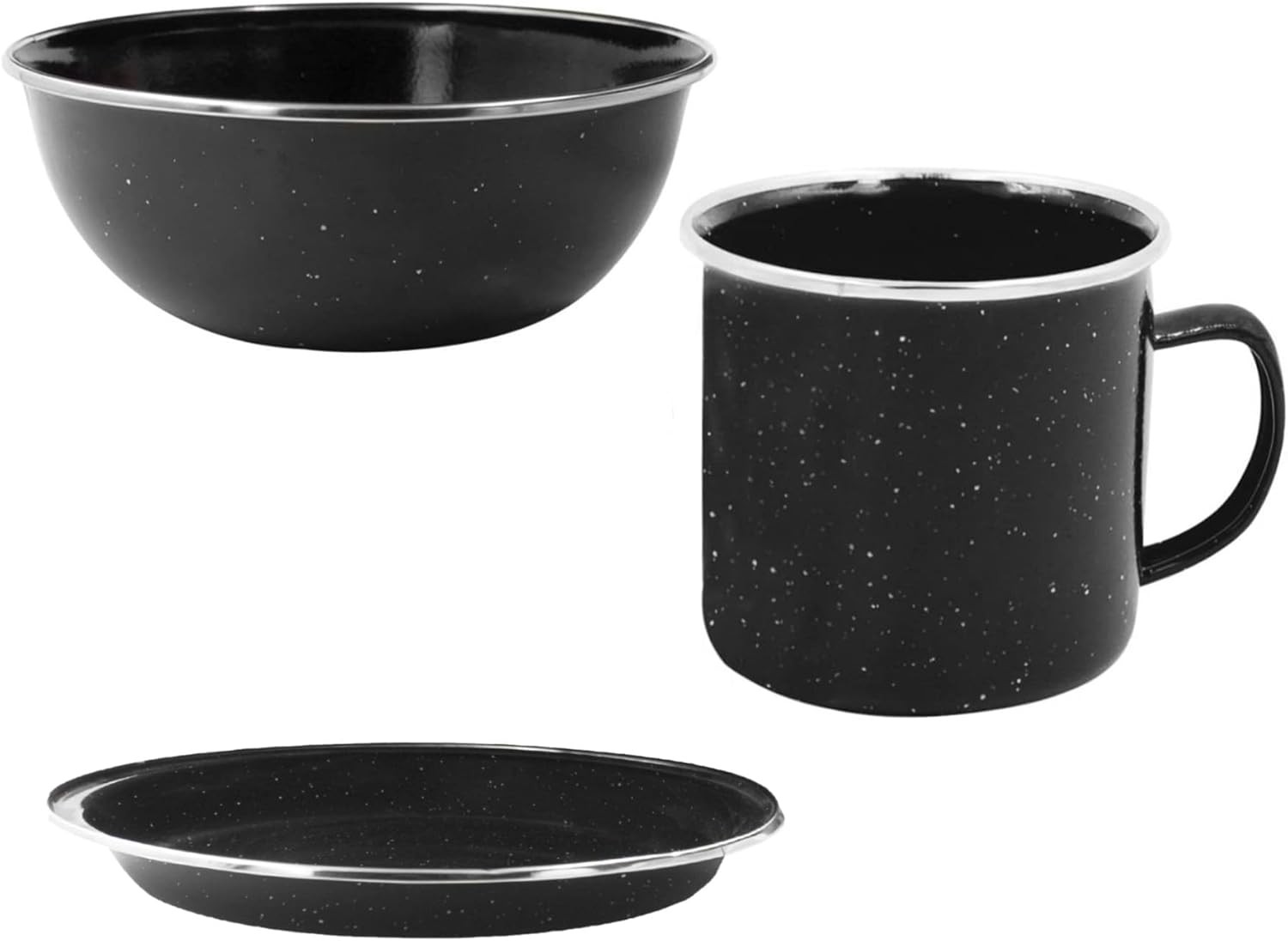 Milestone Camping Enamel Travel Mugs, Plates & 6-Inch 15.25cm, Black