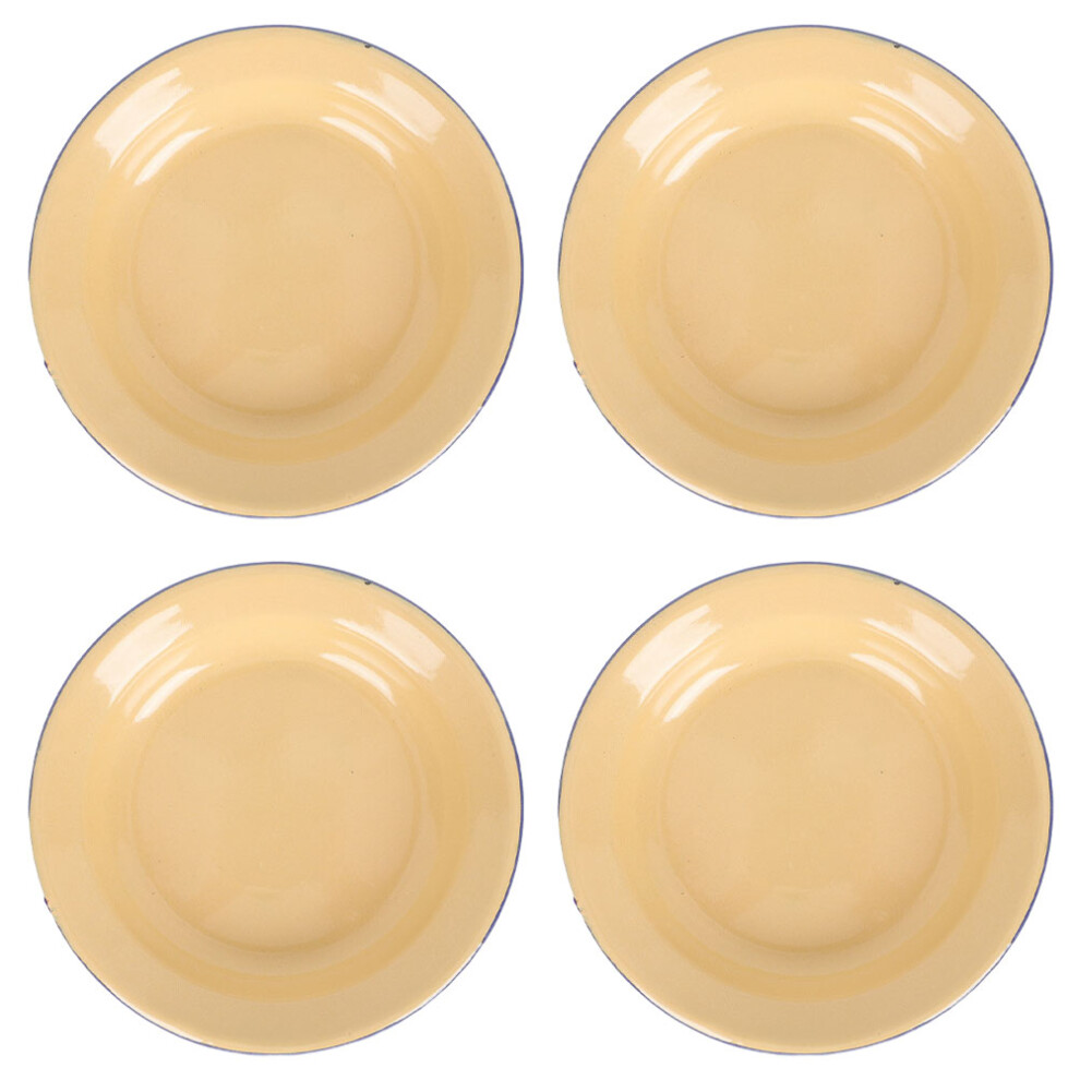 4Pcs Vintage Yellow Enamel Plates Decorative Fruit and Snack Trays