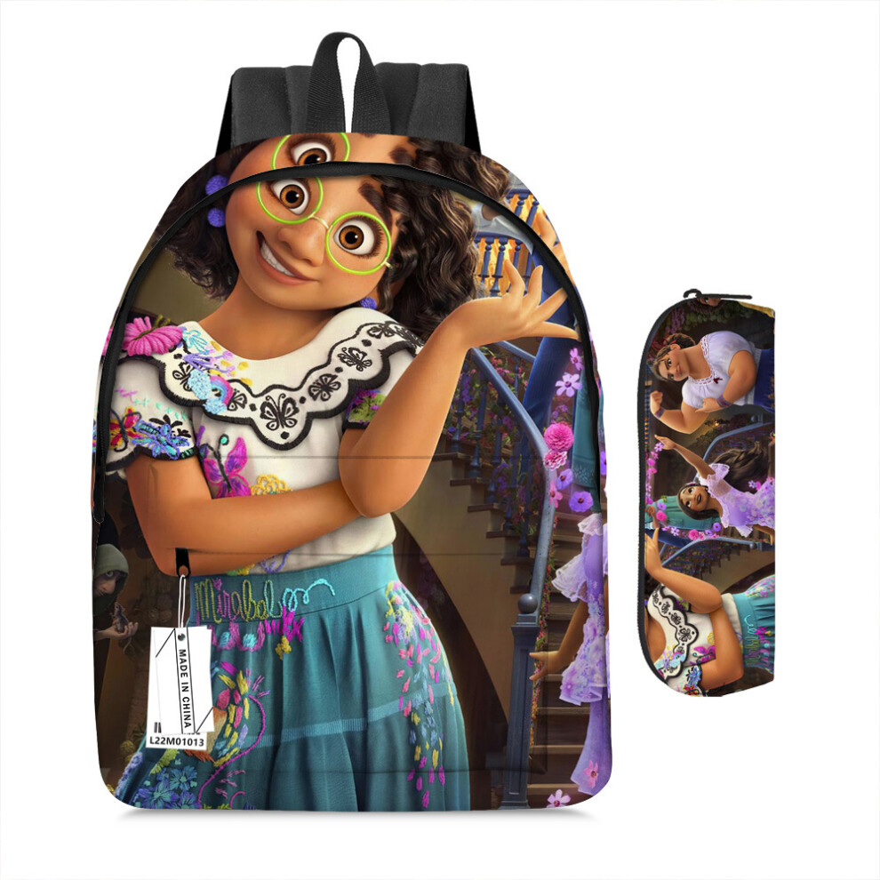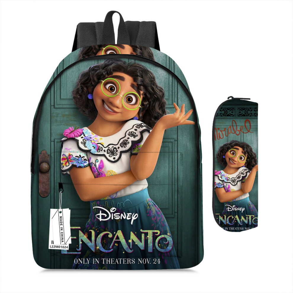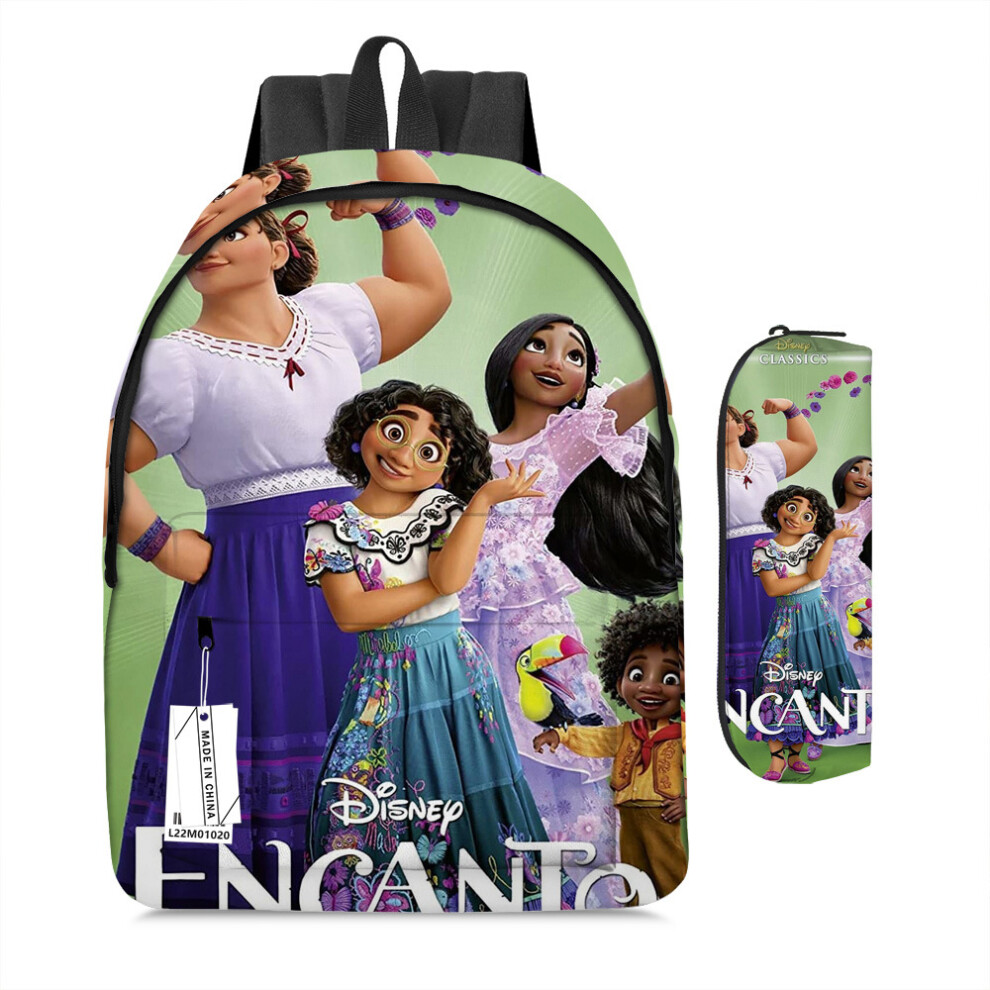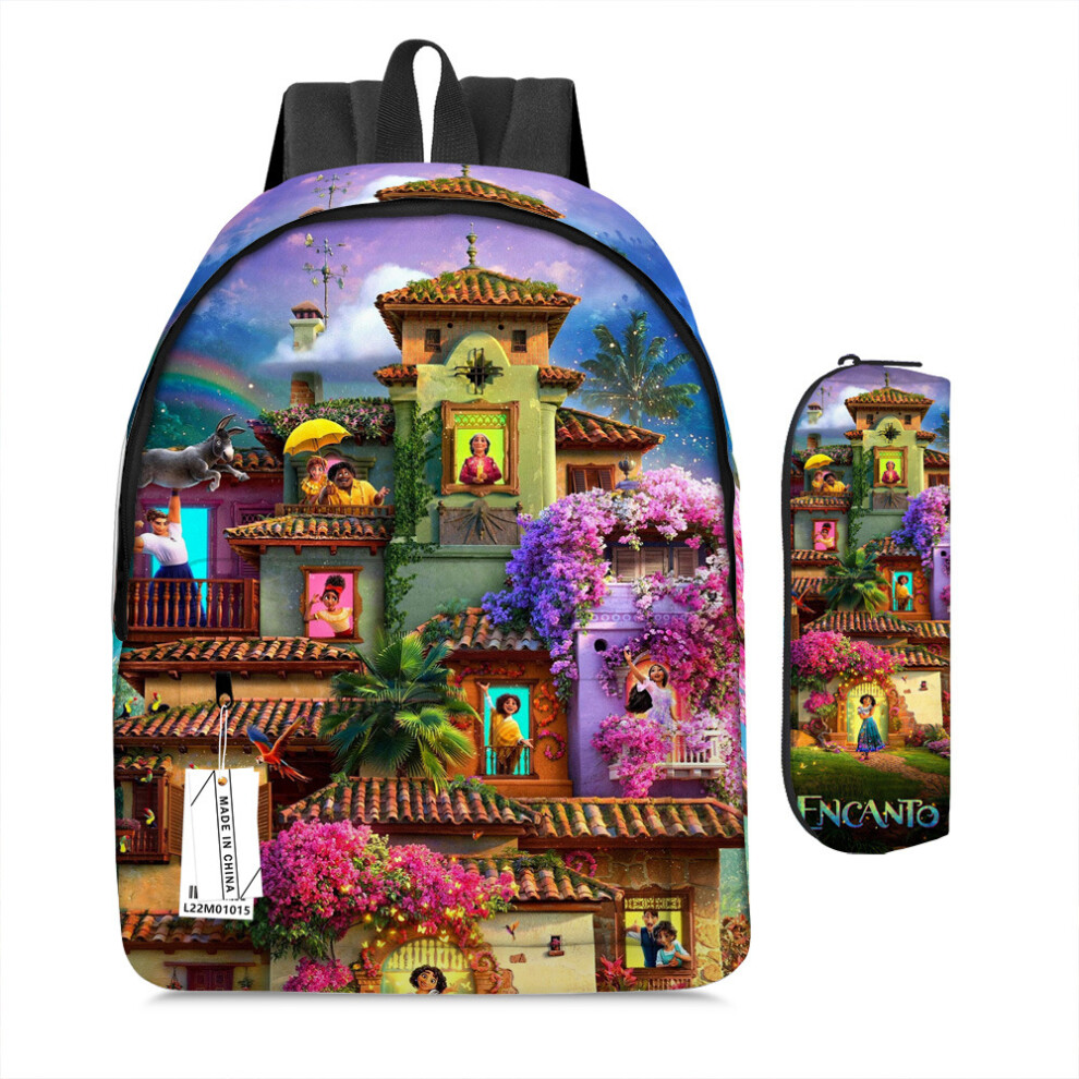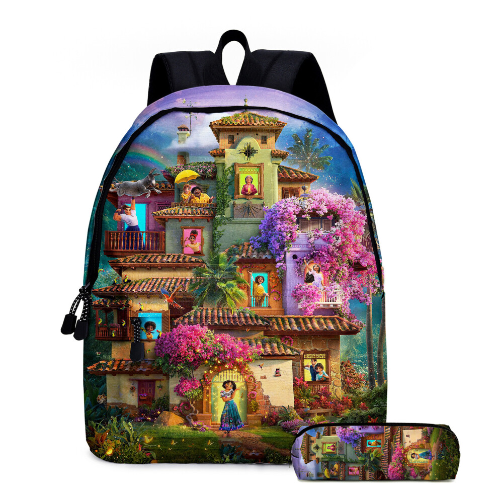 (I, School bag + pen bag) New Magic House Encanto Backpack Primary School School Bag 3D Digital Printed Women's Backpack Computer Bag Pen Bag