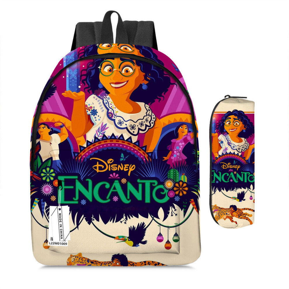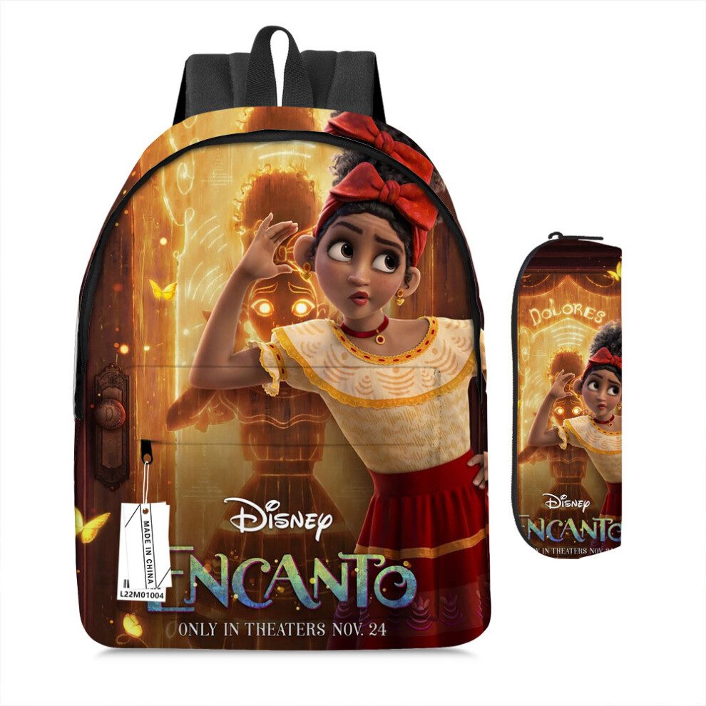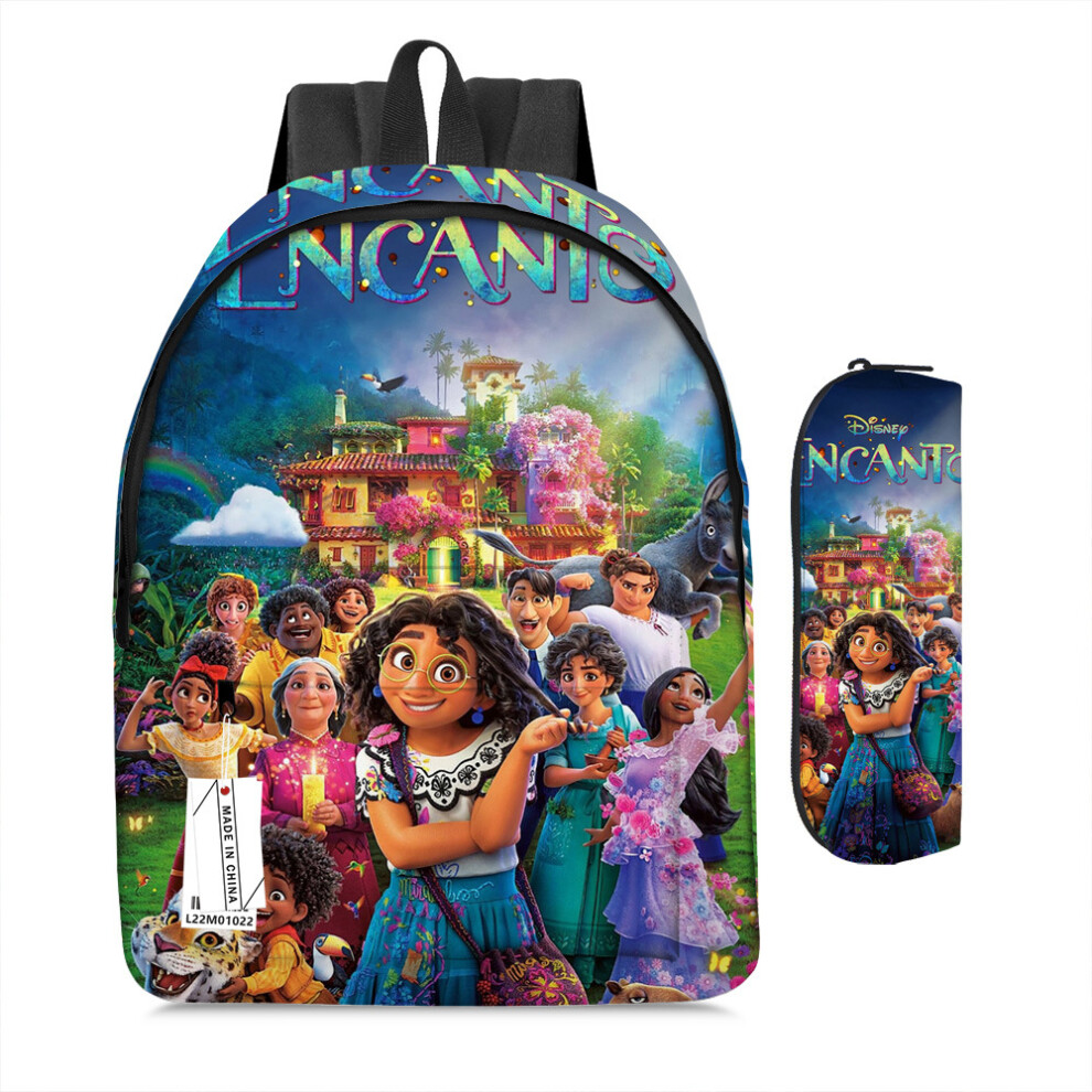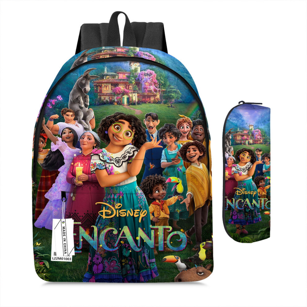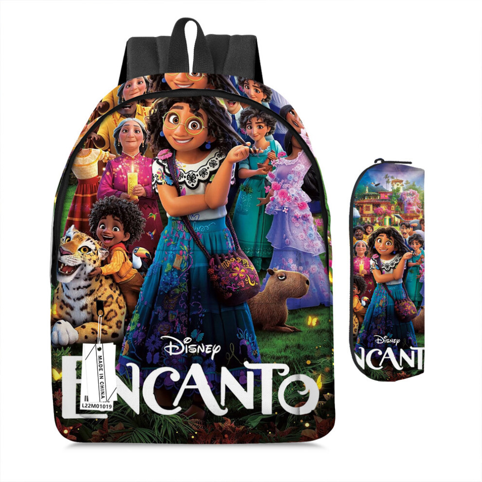 (I, School bag + pen bag) New Magic House Encanto Backpack Primary School School Bag 3D Digital Printed Women's Backpack Computer Bag Pen Bag