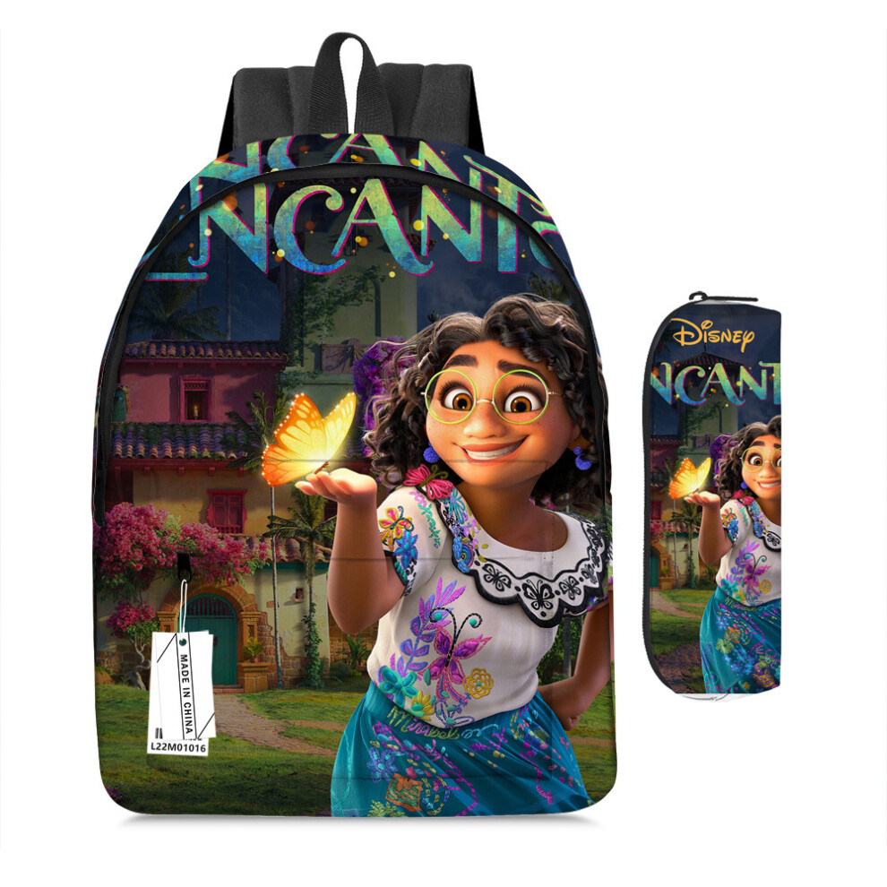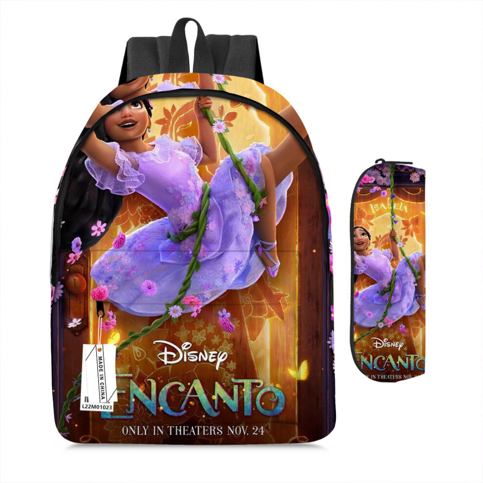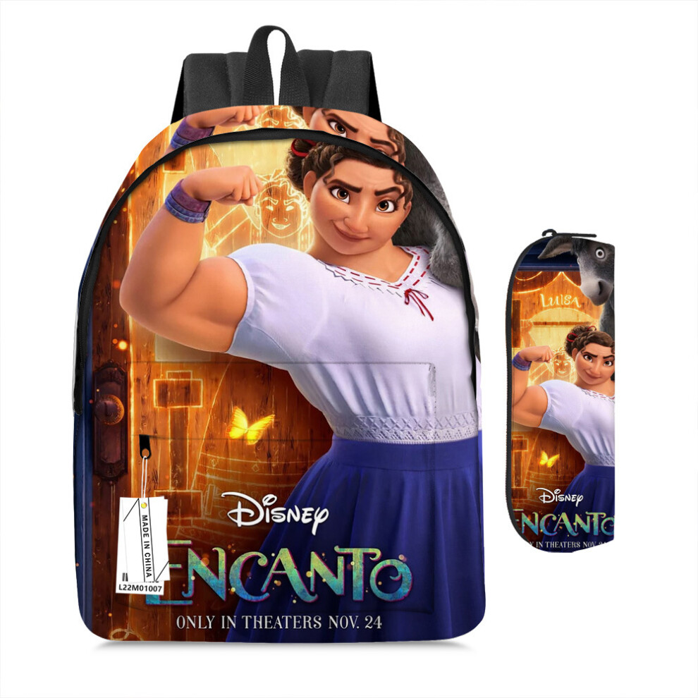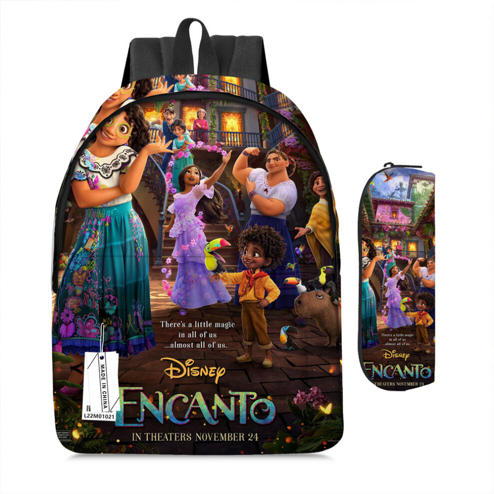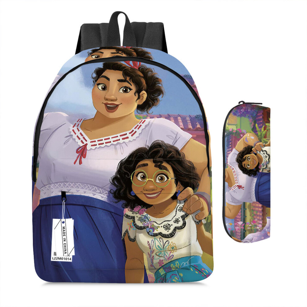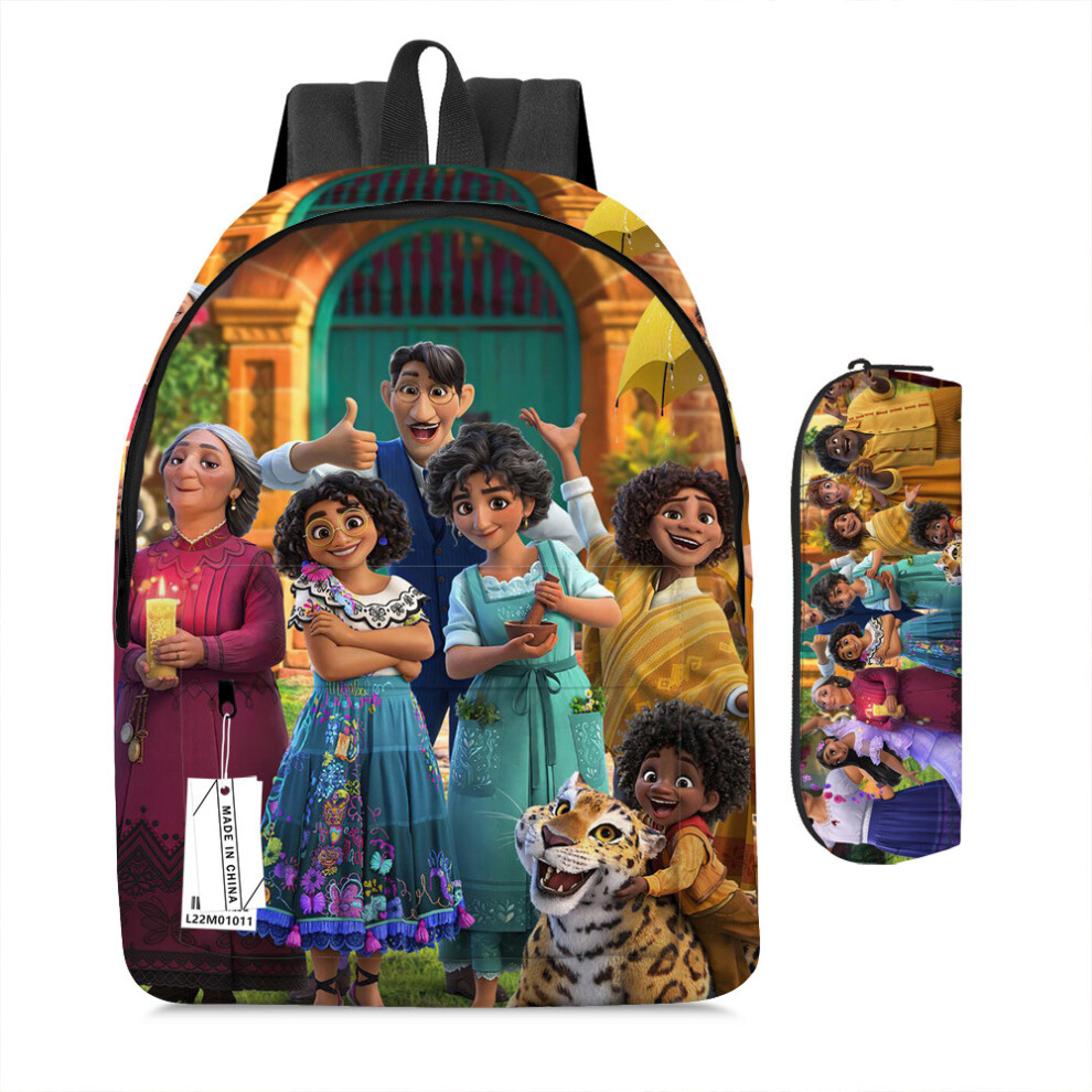 (I, School bag + pen bag) New Magic House Encanto Backpack Primary School School Bag 3D Digital Printed Women's Backpack Computer Bag Pen Bag