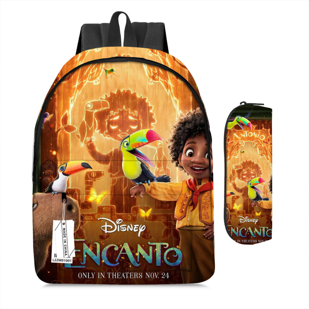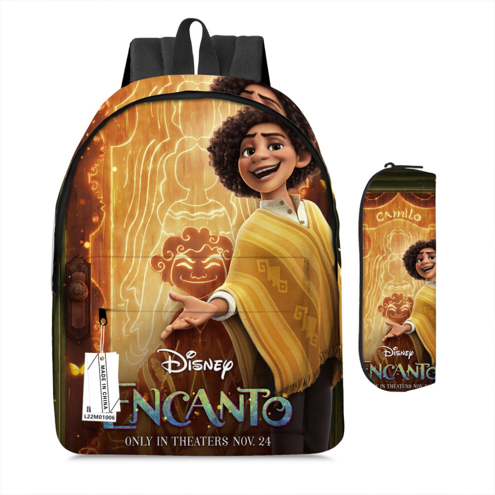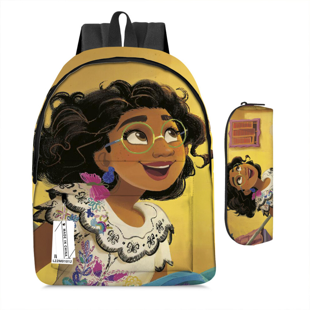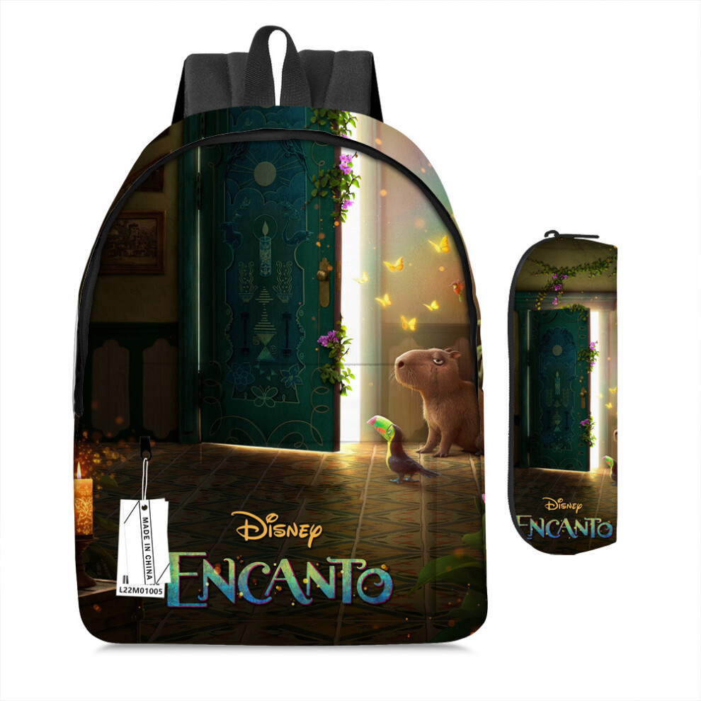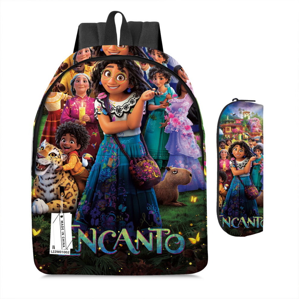 (I, School bag + pen bag) New Magic House Encanto Backpack Primary School School Bag 3D Digital Printed Women's Backpack Computer Bag Pen Bag