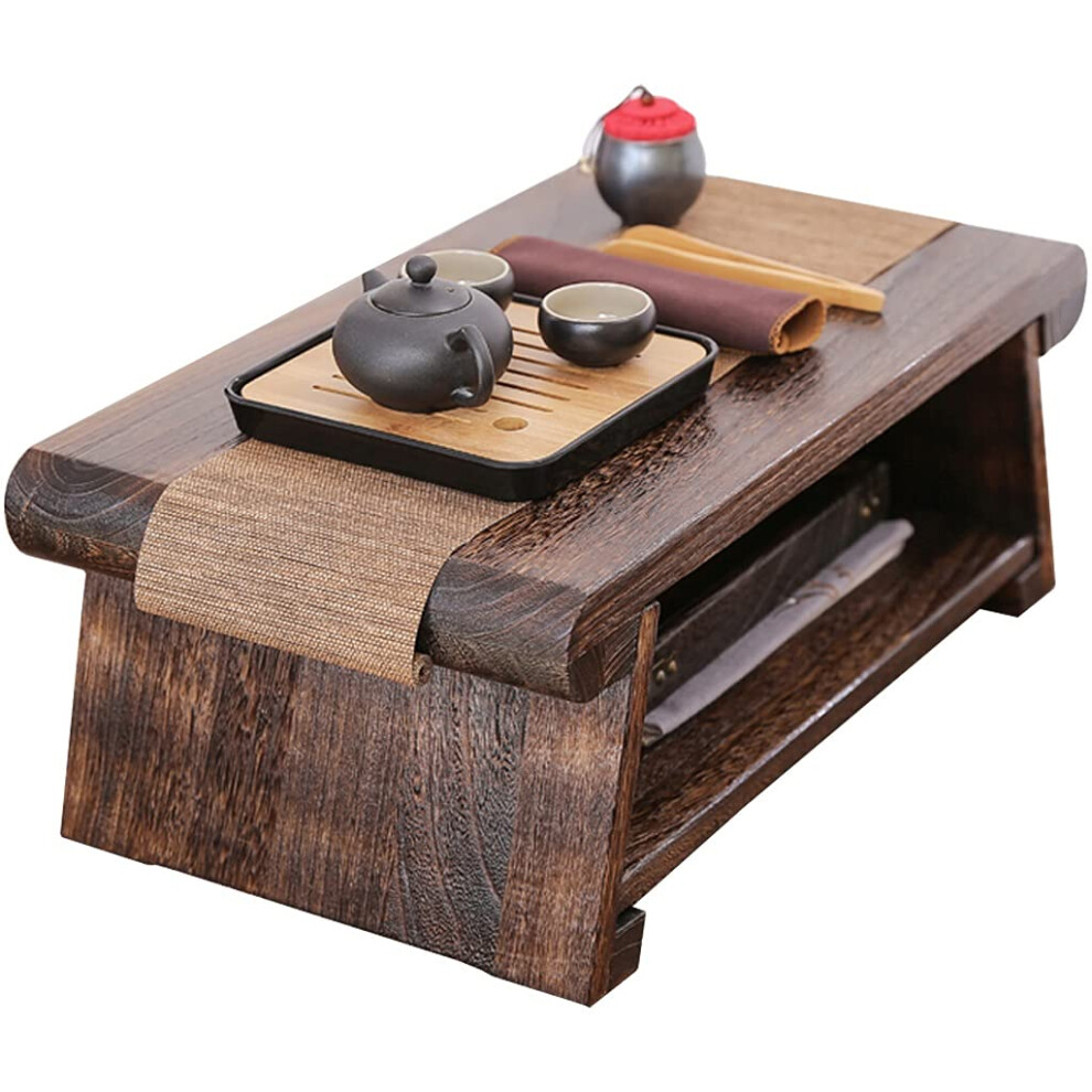 End Tables, Coffee Table 2-Tier W/Storage Shelf, Retro Japanese Tea Table, Tatami Table for Living Room, Bay Window (Color : Dark brown, Size : 80 *