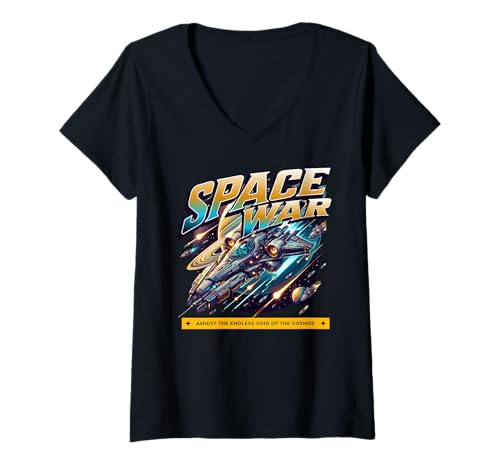 Women's Sci Fi Space War Amidst The Endless Void of The Cosmos V-Neck T-Shirt