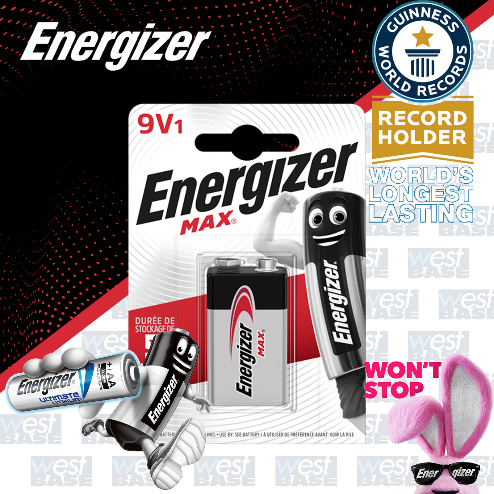 ENERGIZER ALKALINE POWER 6LR61 BATTERY 9V E BLOCK 6AM6 MN1604 LONG LASTING NEW
