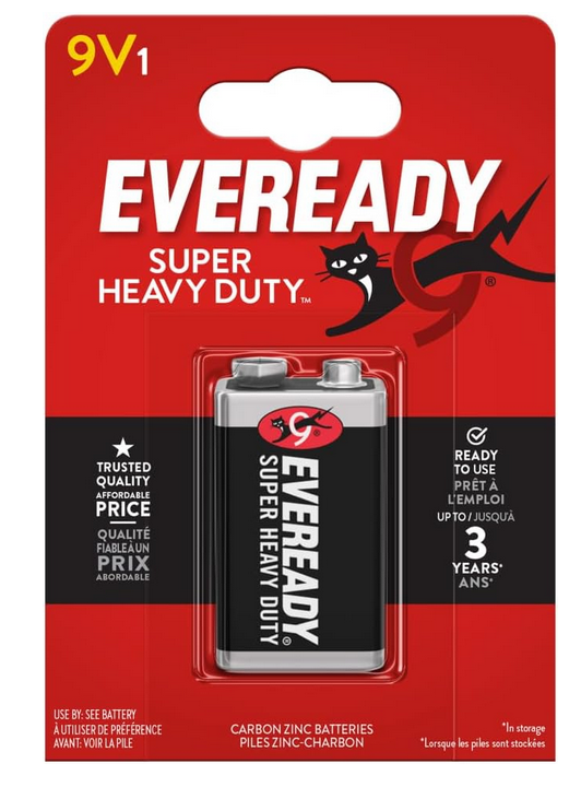 9V Battery Eveready Energizer Super Heavy Duty 9V -6F22 ZINC CARBON
