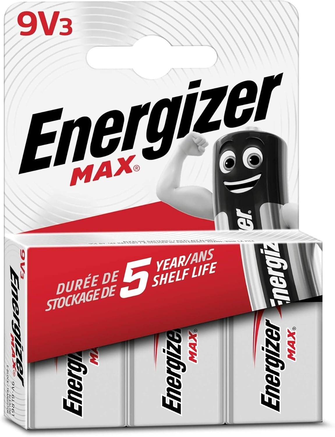 Energizer Max - 9V Battery (3 Pack) - Nine Volt Alkaline Block (Pack of 3)