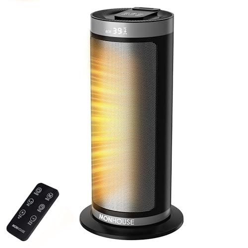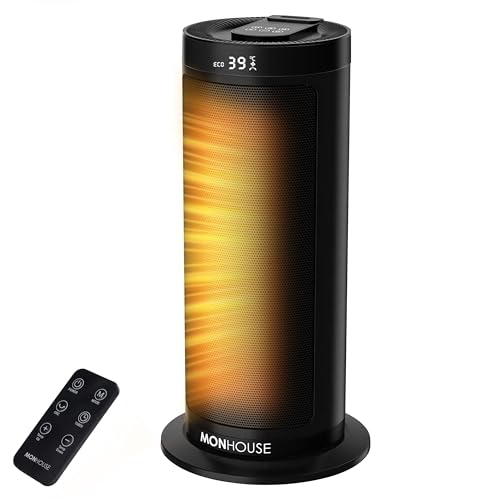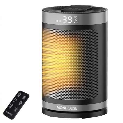 MONHOUSE Electric Heater - Energy Efficient PTC Ceramic, Silent Portable Heater with LED Display, Remote Control, Overheat Protection, Smart Thermostat, 1-12HR Timer - Ideal for Office, Home, Bedroom
