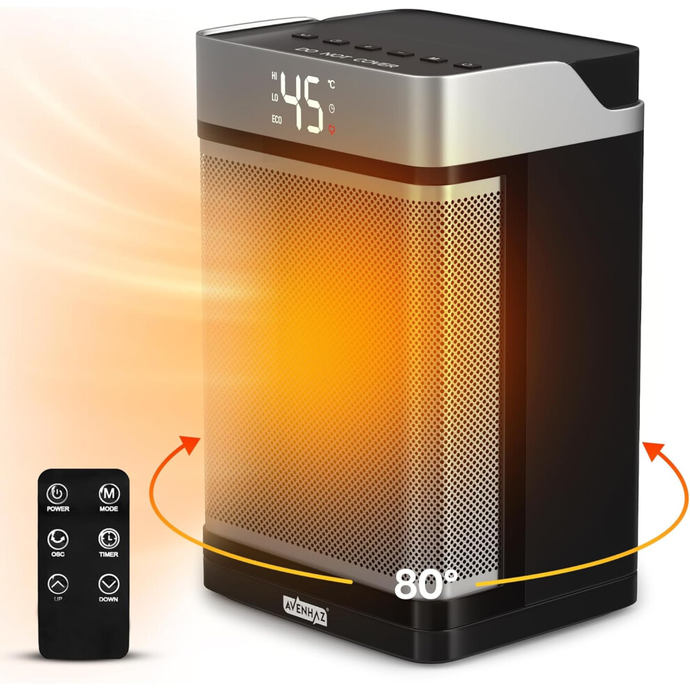 Electric Space Heater 1500W Energy Efficient, 80° Oscillating PTC Ceramic Heaters with Thermostat