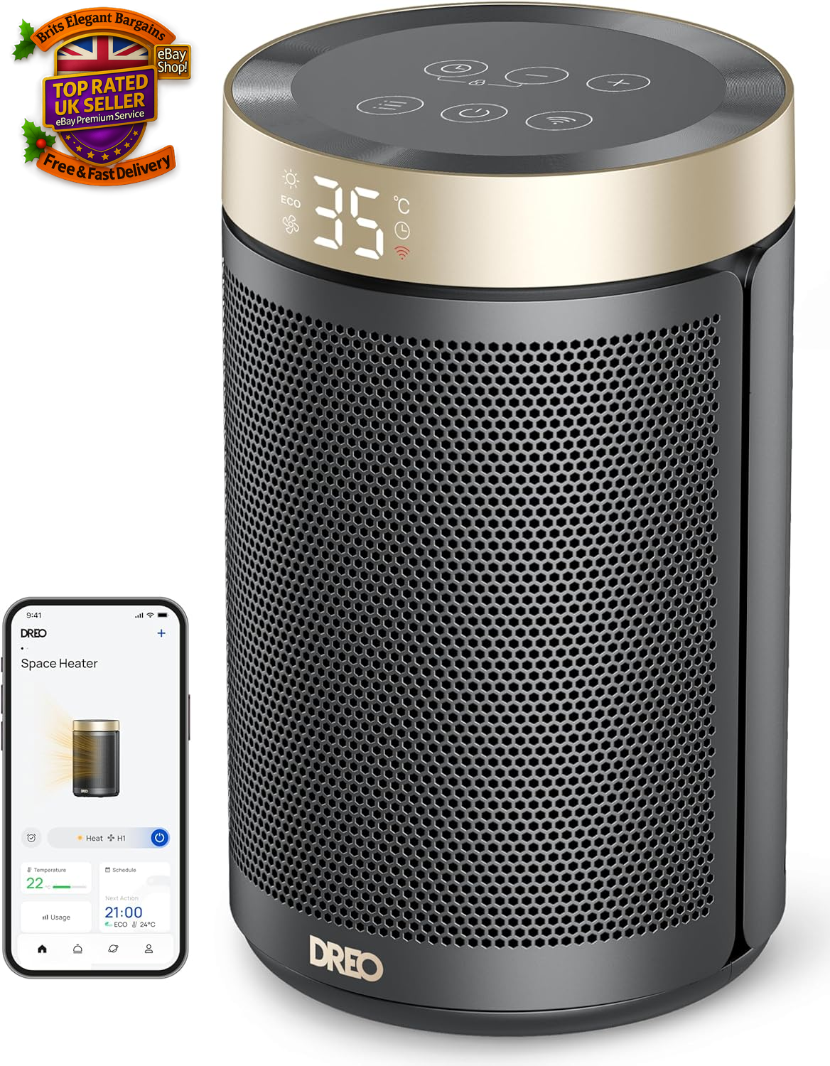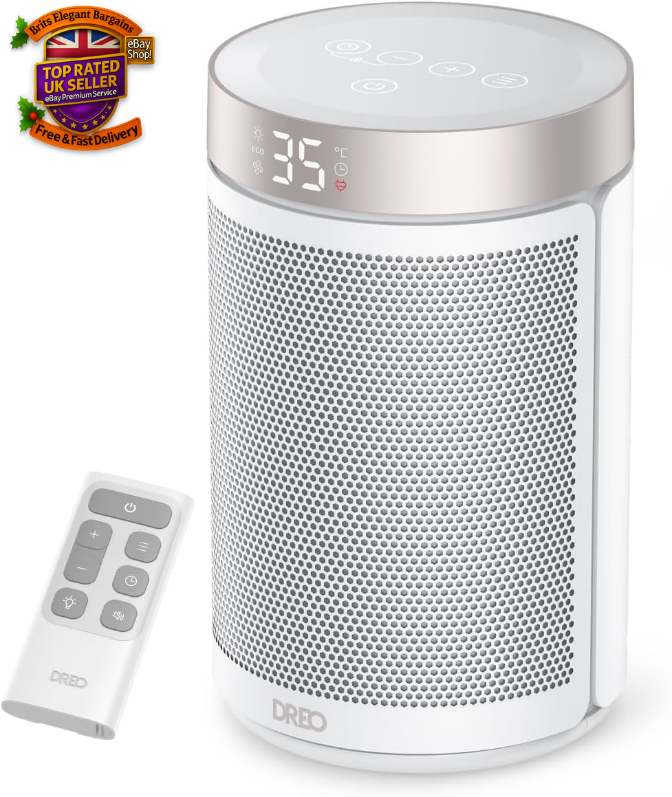 Dreo Electric Heater, 1500W Energy Efficient Space Heater, Portable Ceramic Fan Heaters, Thermostat 3 Modes 12H Timer, Atom 316, Gold