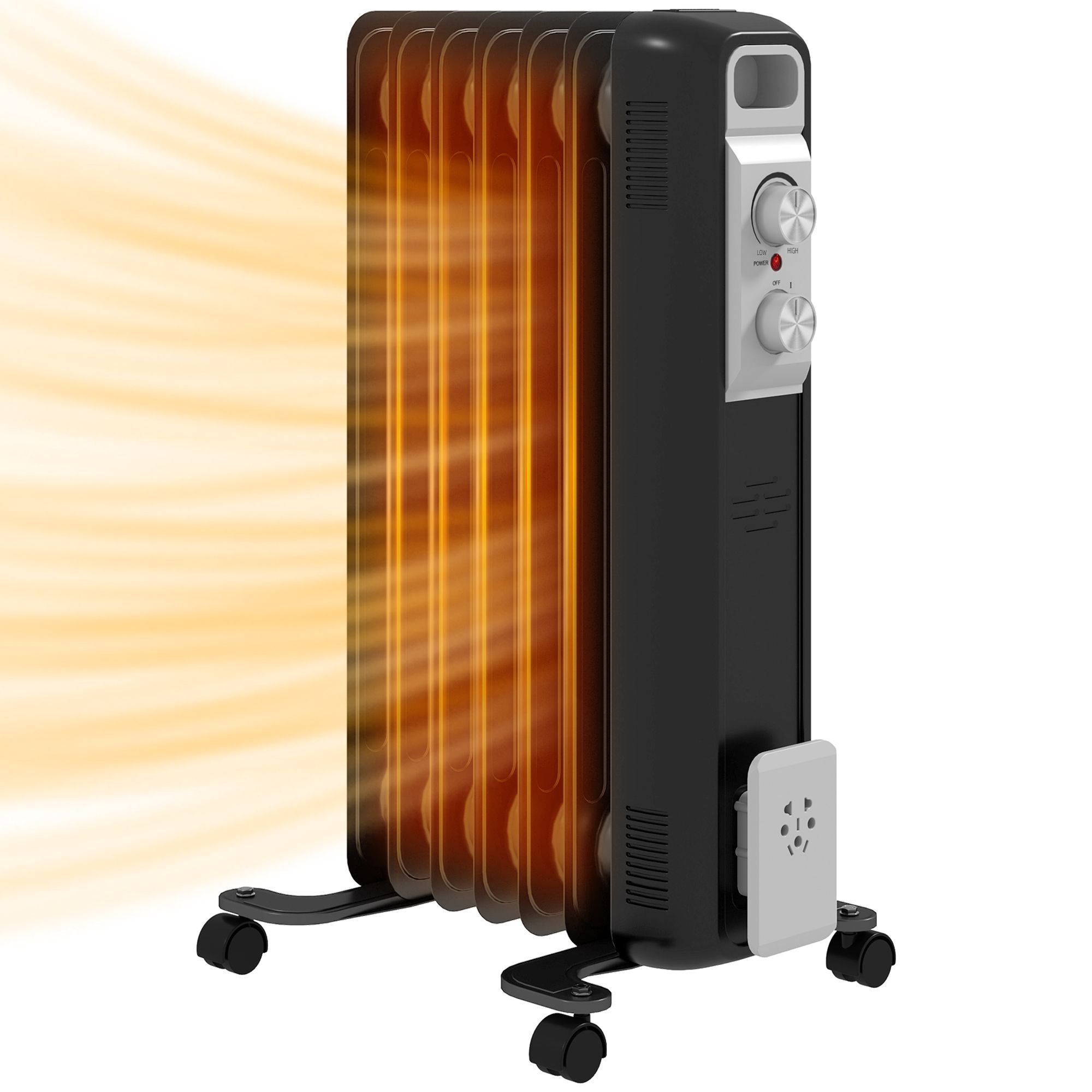 Homcom 1500w Quiet Oil Filled Radiator, 7 Fin Energy Efficient Portable Electric Heater With 3 Heat Settings, Adjustable Temperate, Safety Tip Over, O