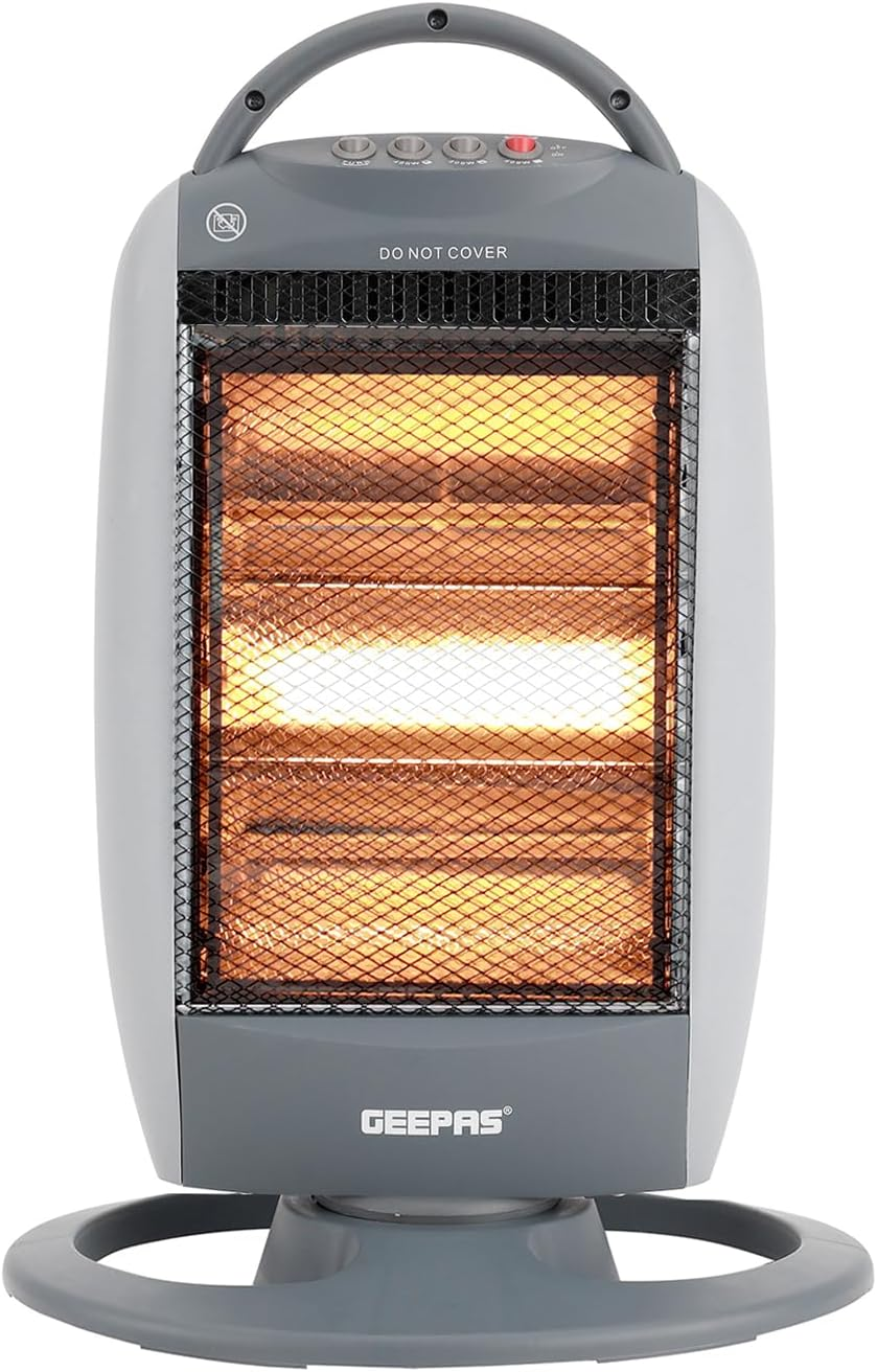 GEEPAS Halogen Heater 1200W | Instant Heating Energy Efficient Heater with 3 Hea