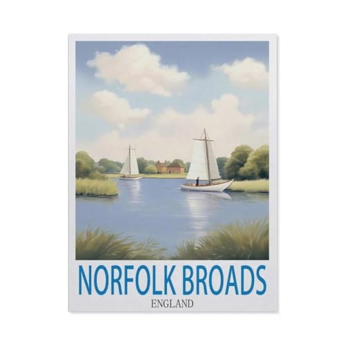 Jigsaw Puzzle 1000 Piece,Norfolk Broads England Vintage Travel Posters,Adult Puzzle DIY Kit Paper Puzzle Modern Home Decor Unique Gift50x70cm-DC87
