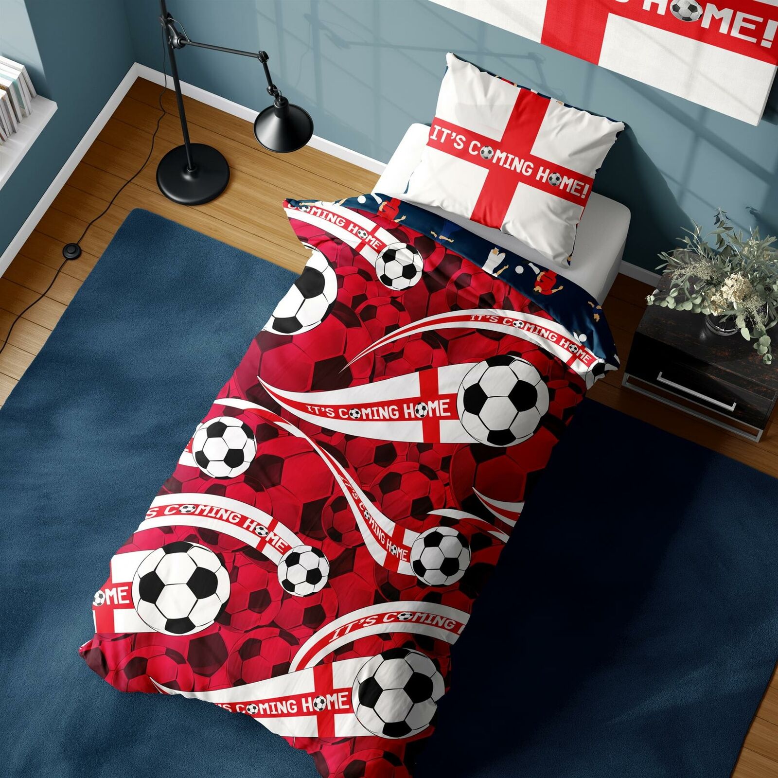 Its Coming Home Single Duvet Cover England Football Design Reversible Bed Set