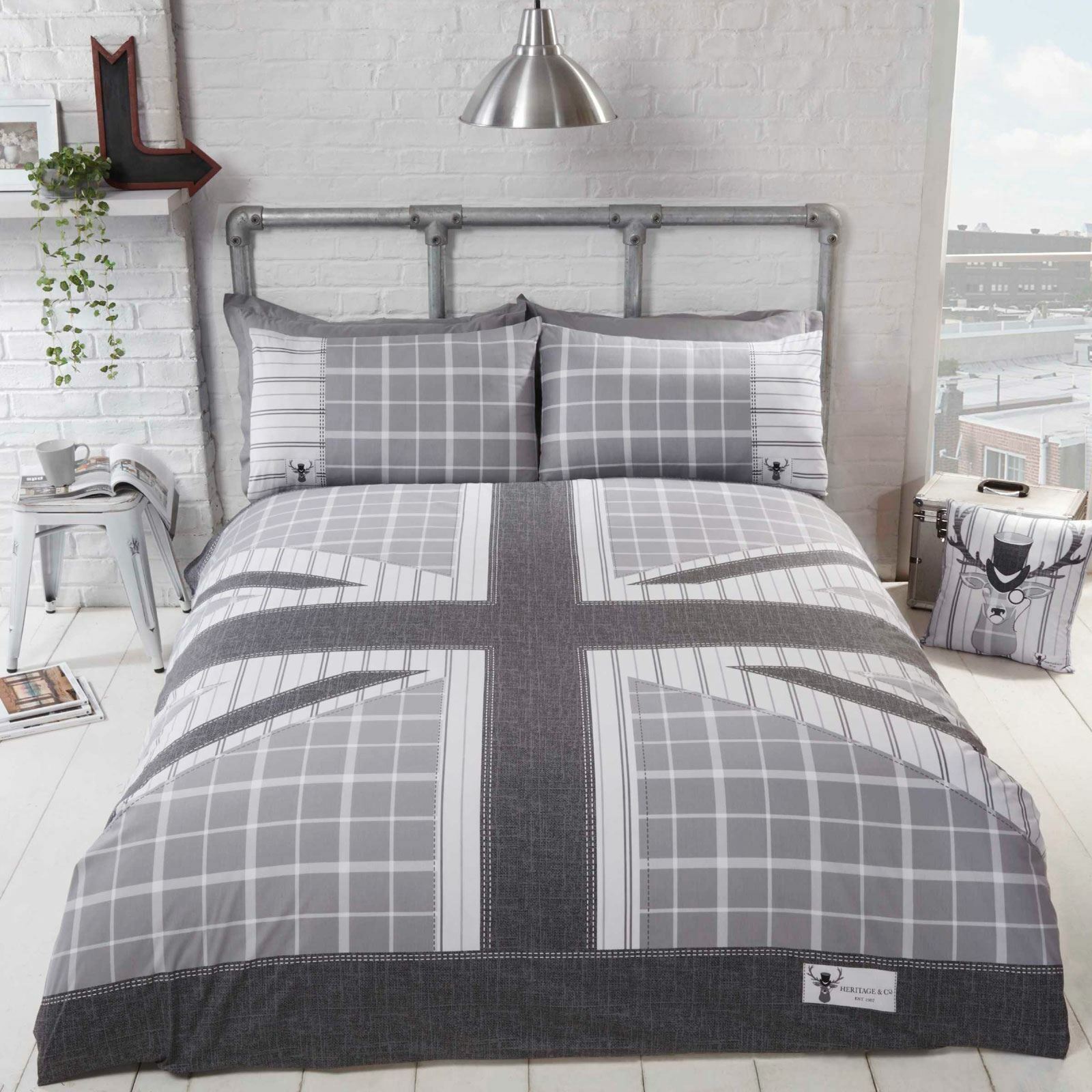 BRITISH FLAG COOL BRITANNIA SINGLE BEDDING SET UK ENGLAND DUVET COVER GREY