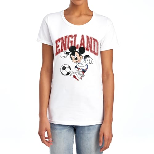 Disney Mickey Mouse England Football Womens T Shirt, White, XXL