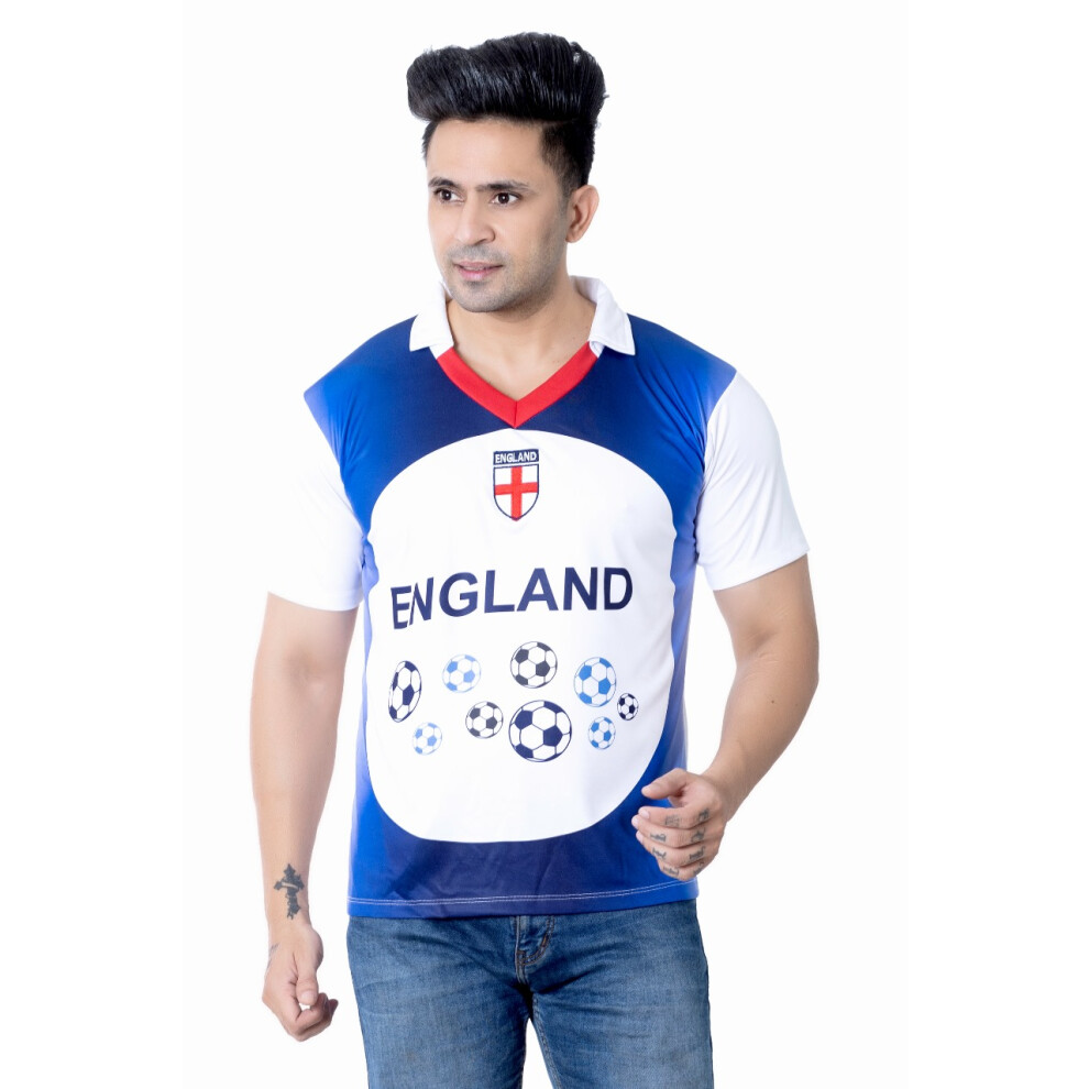 (Blue, XXL) England Football Short Sleeve Men Polo T-Shirt