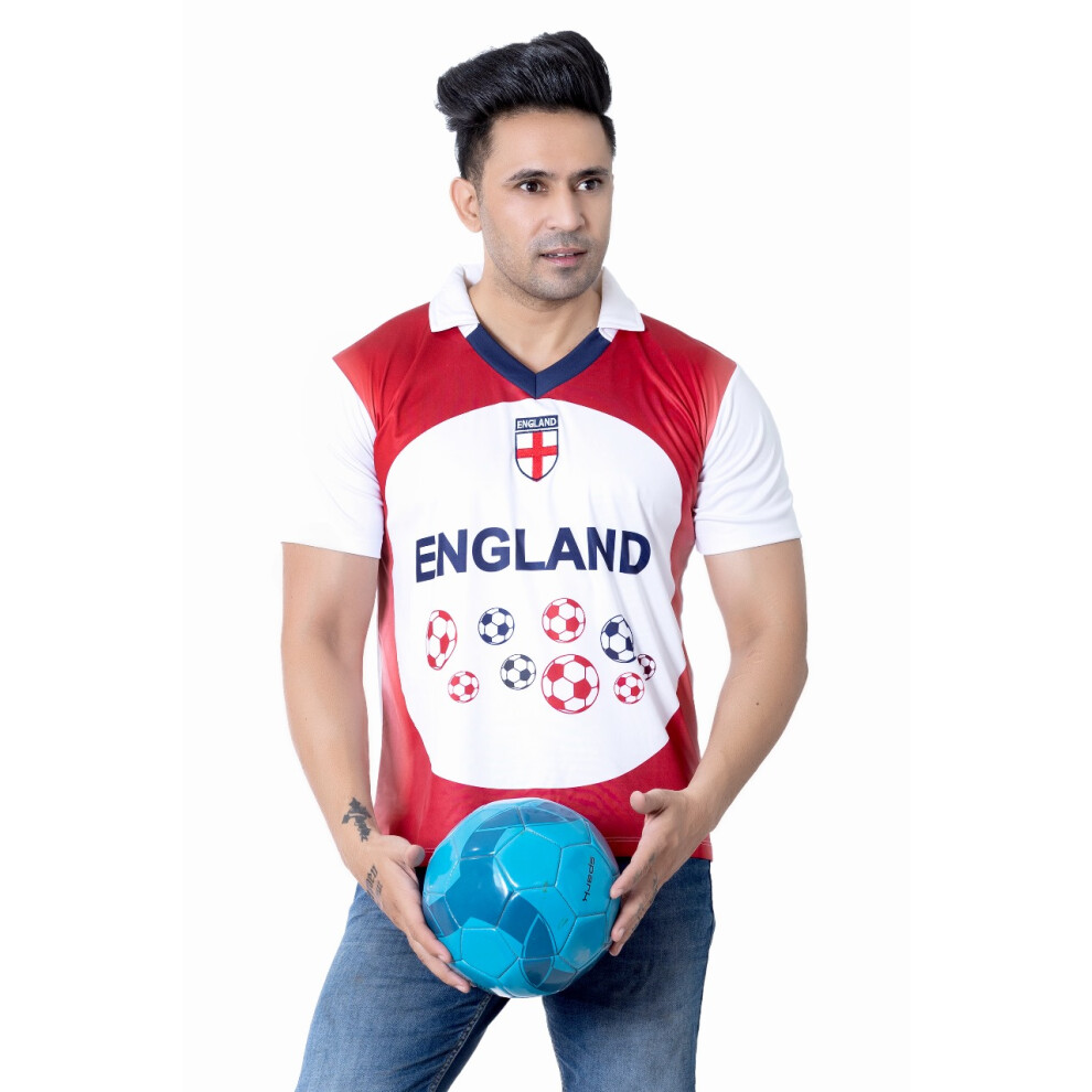 (Red, XXL) England Football Short Sleeve Men Polo T-Shirt