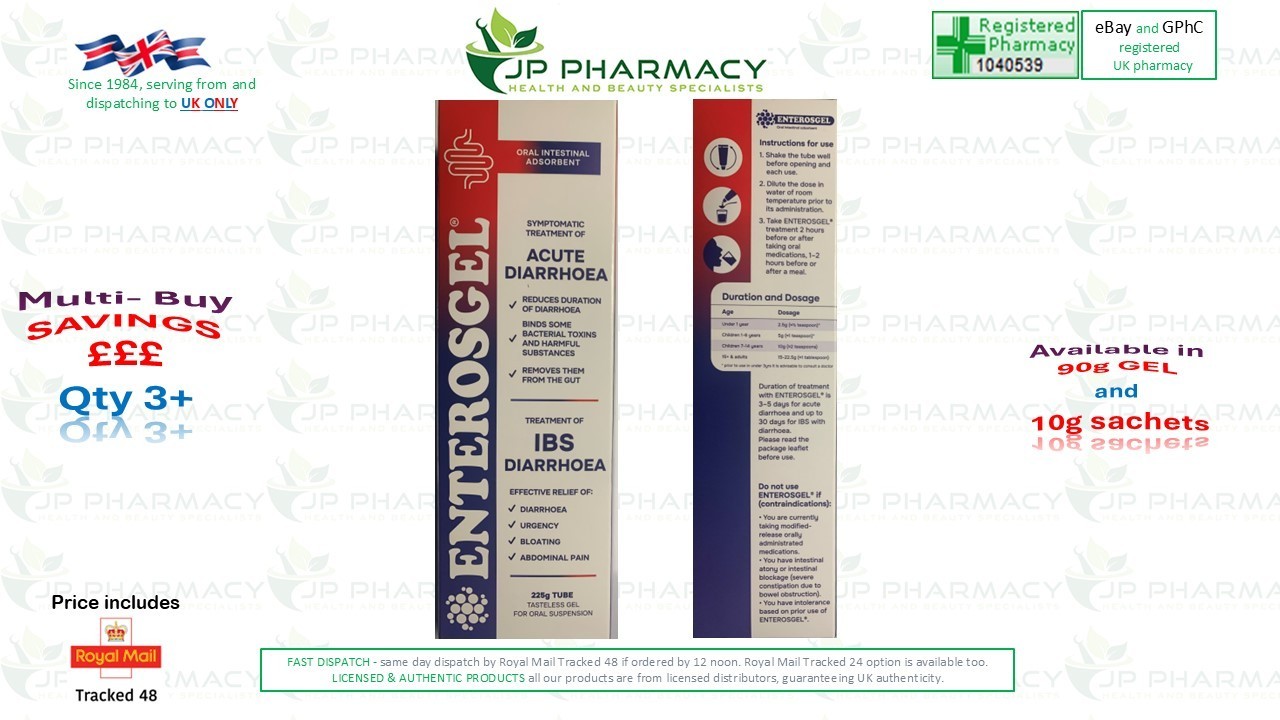 ENTEROSGEL Acute diarrhoea IBS treatment. 225g gel tube. EXP: 06/28