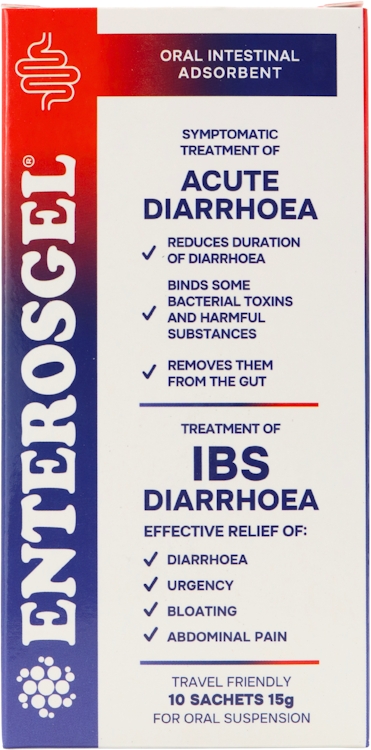 ENTEROSGEL - Acute Diarrhoea - reduces duration, removes toxins from gut -10 Sac