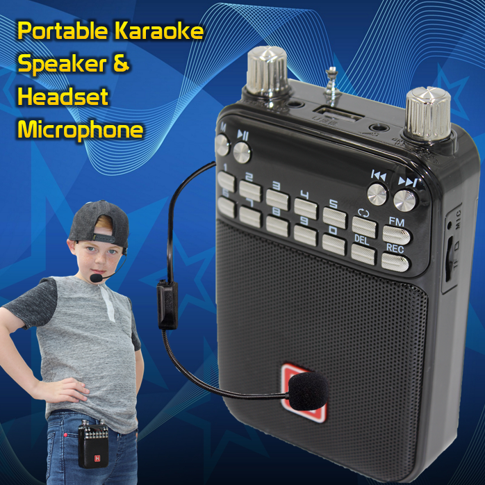Portable Karaoke Machine Speaker & Headset Mic Boys Black. Mr Entertainer Popbox