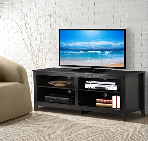 Furinno JAYA TV Stand, 4-Tier Entertainment Center, TV Console for TV up to 55 Inch with 2 Storage Bins and Open Shelves, for Living Room, Bedroom, Black