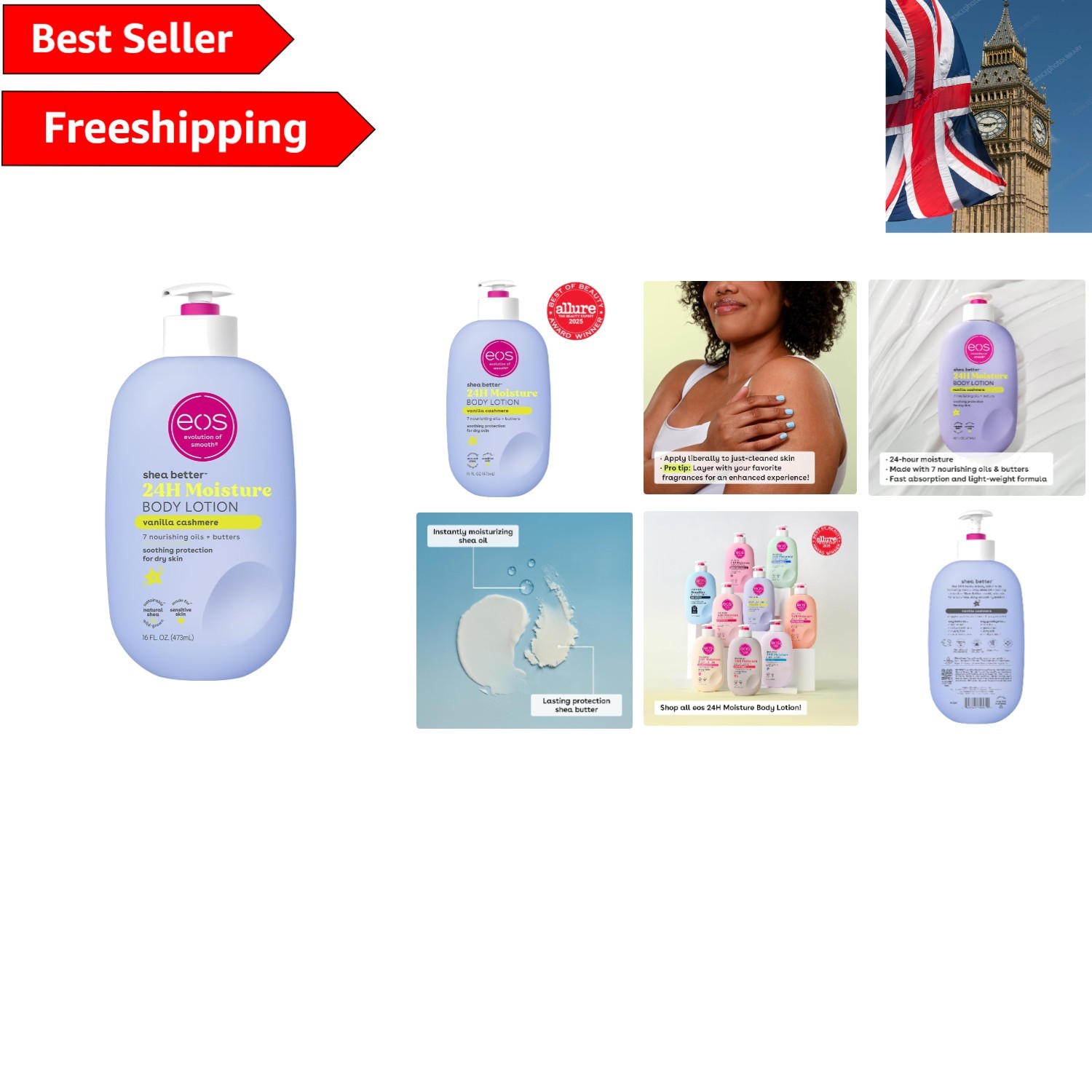 eos Shea Better Body Lotion Vanilla Cashmere 16 fl oz – 24-Hour Moisture from UK