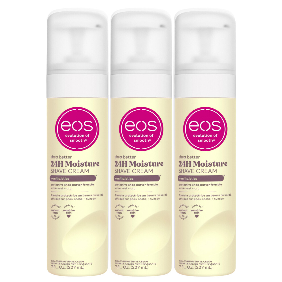 eos Shea Better Shaving Cream for Women- Vanilla Bliss 24-Hour Hydration Skin Care & Lotion with Shea Butter 7 fl oz 3-Pack