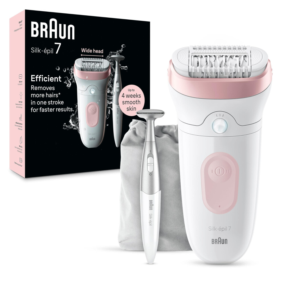 Silk-épil 7 Epilator with Wide Head for Easy Hair Removal, Braun Epilator for Women, Wet & Dry, Lasting Smooth Skin, Bikini Trimmer Women, 7-210,