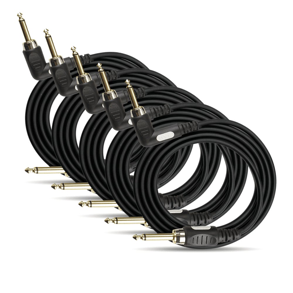 Pack of 5 x 6m Guitar Cable 1/4 inch 6.35mm Jack Electric Acoustic OFC Pro Lead