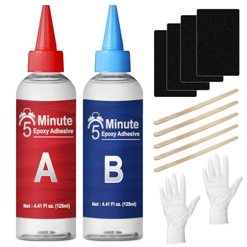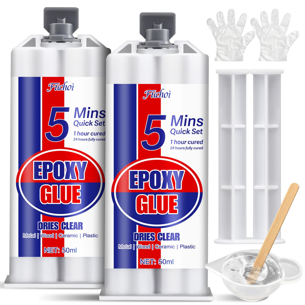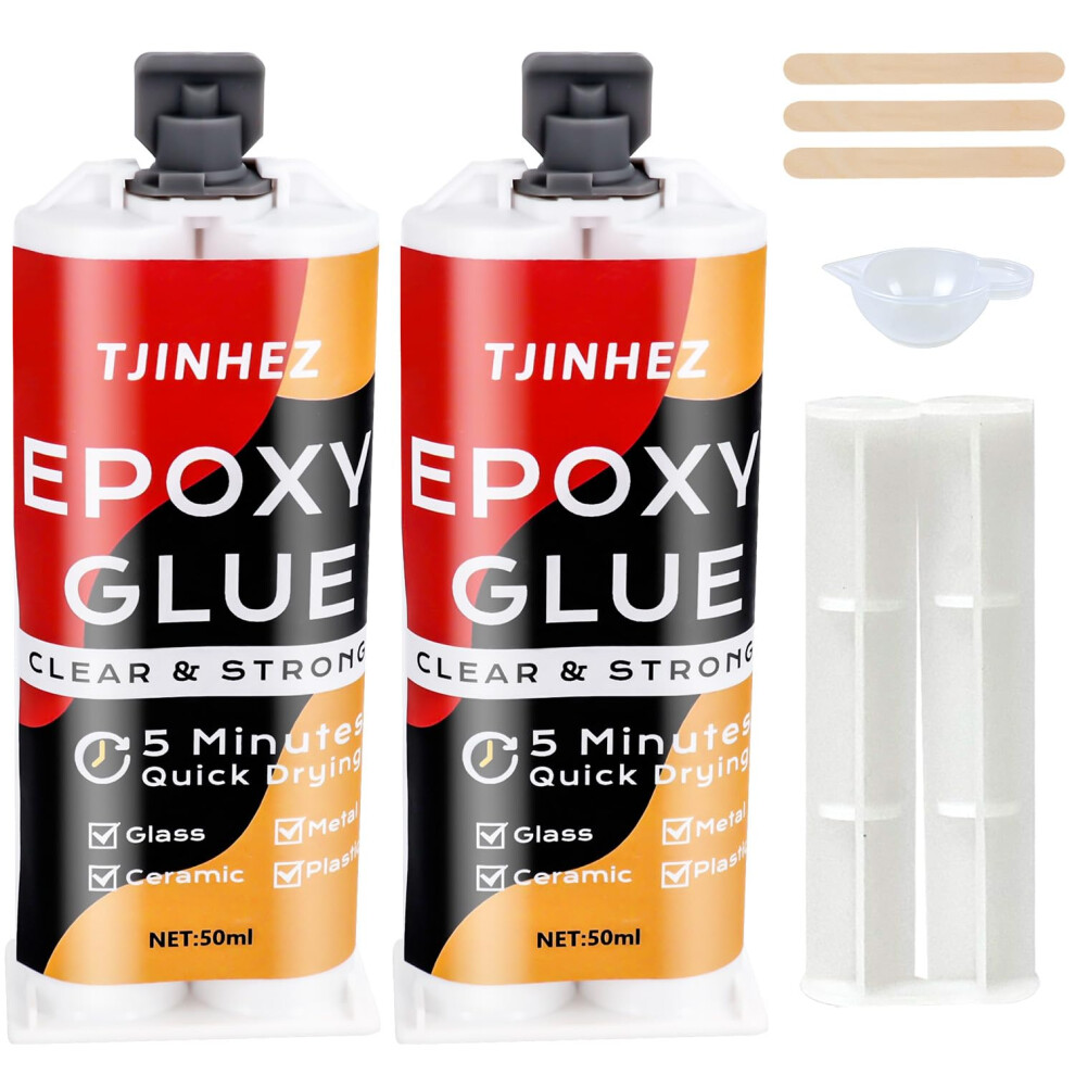5 Minute Epoxy Glue, 100ml Fast Curing Epoxy Resin Kit, Clear 2 Part Epoxy Adhesive for Metal, Plastic, Wood, Ceramic, Glass, Fiberglass and More - Waterproof, Universal, Strong Bond Repair Glue
