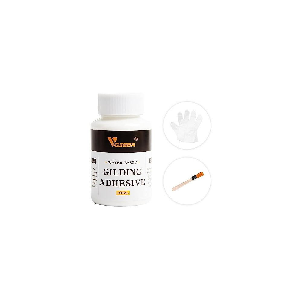 VGSEBA Gold Leaf Glue, 100ml Gilding Adhesive Glue, Epoxy Resin Water Based Gold Leaf Glue for Craft, Arts, Wood Use (Glue + Brush + Gloves)