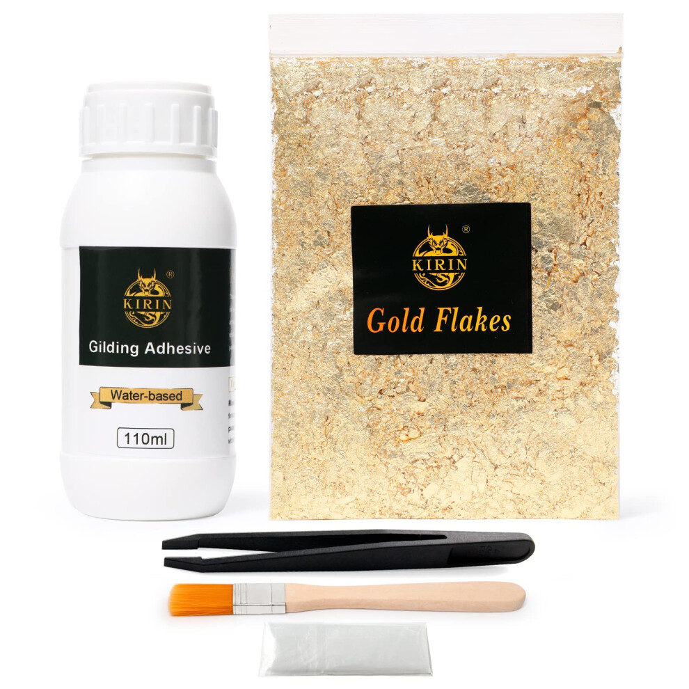 KIRIN Gold Leaf Glue - Epoxy Resin Water Based Gold Leaf Adhesive Set for DIY Craft, Painting, Furniture and Arts