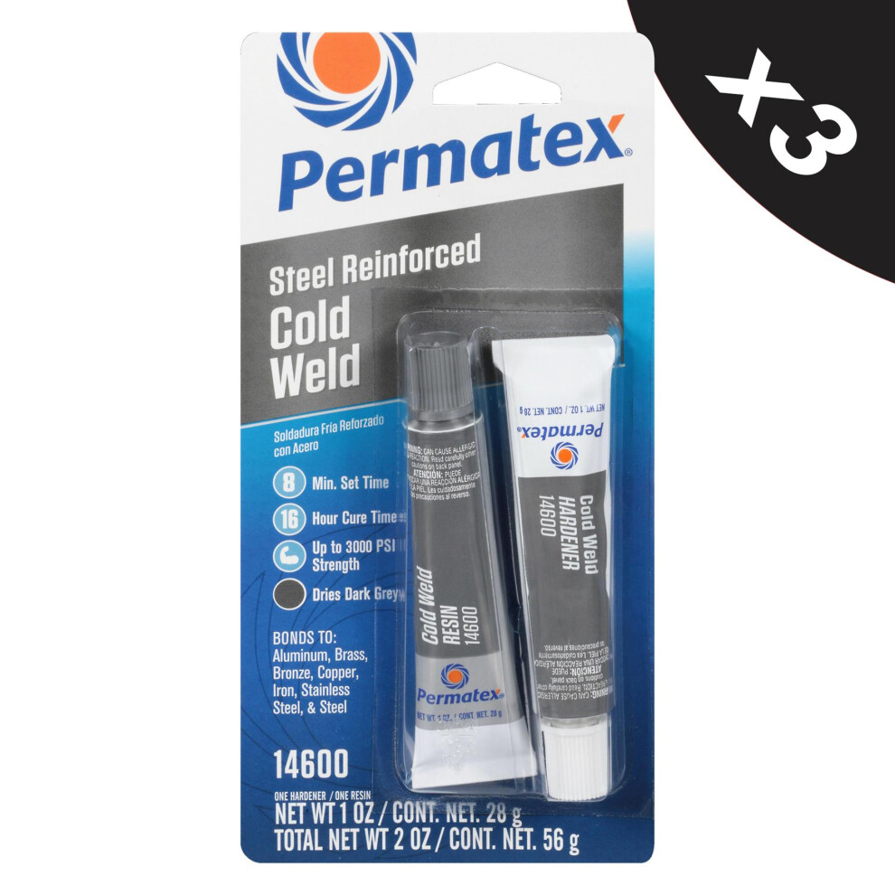 3x Permatex Steel Reinforced Cold Weld Epoxy Resin Hardener Filler Adhesive Glue