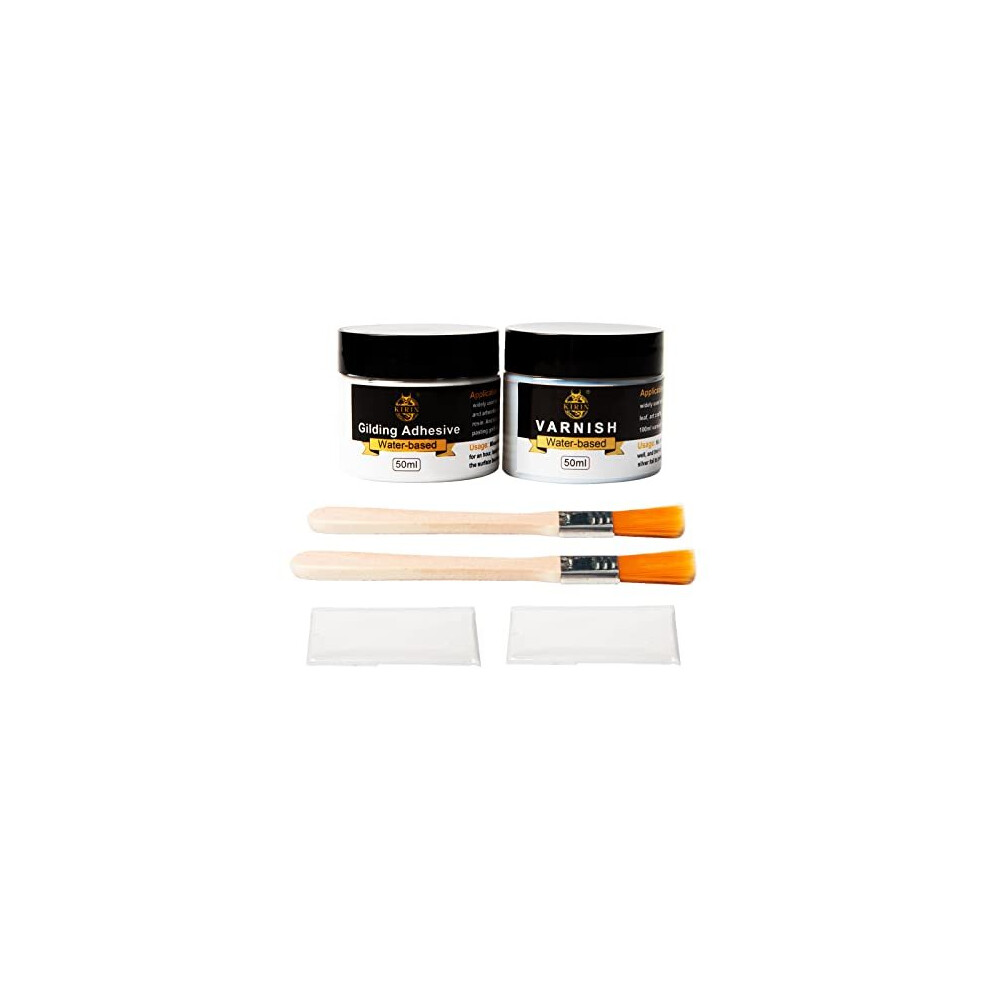 Gilding Adhesive, 50ml Epoxy Resin Water-Based Gold Leaf Glue for Professional Craft Use and 50ml Varnish for Protecting the Surface of the Gold Foil