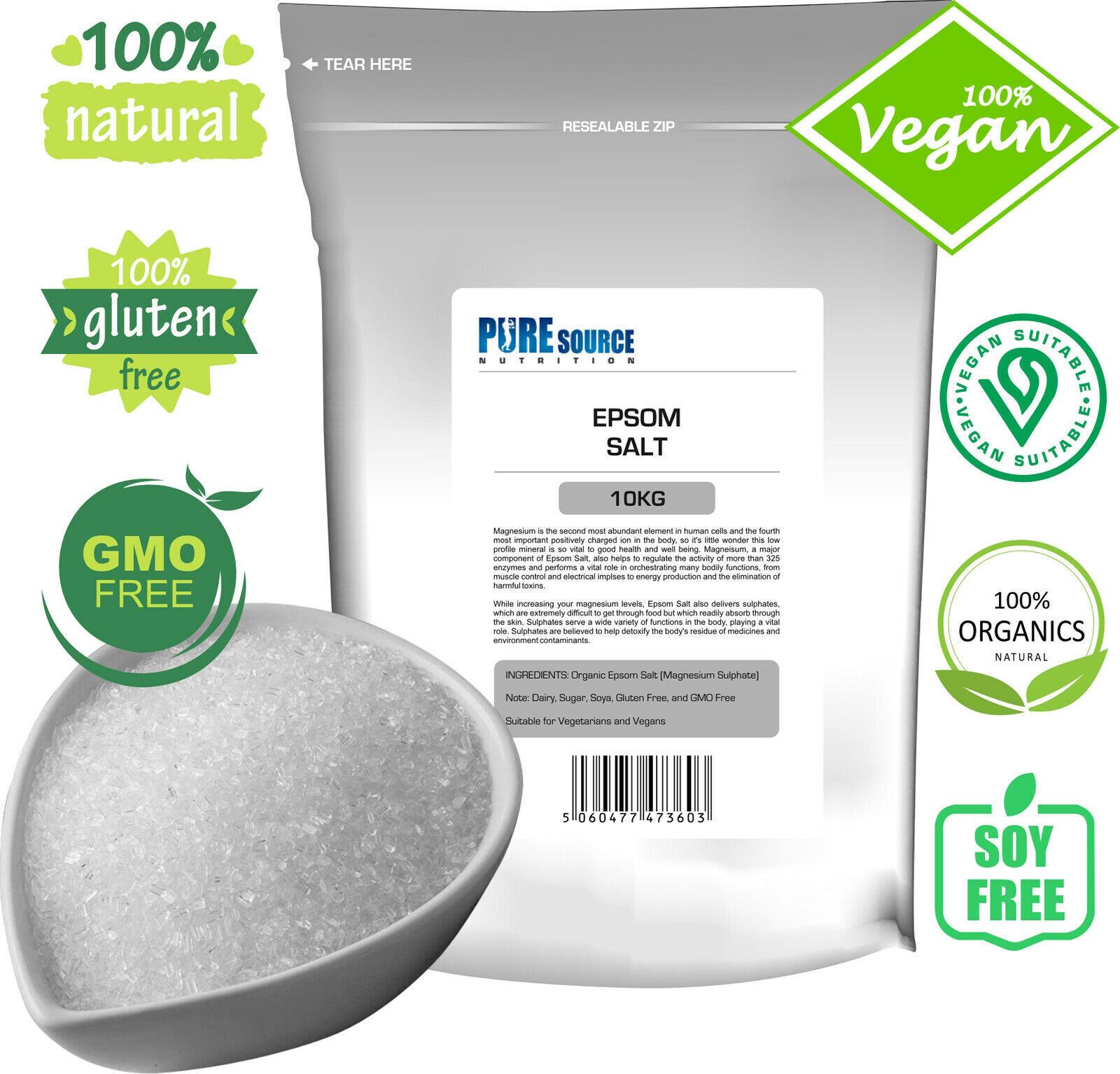 Epsom Salts 10KG Natural Bath Epsom Salt Spa Bathing Magnesium Sulphate BP FCC