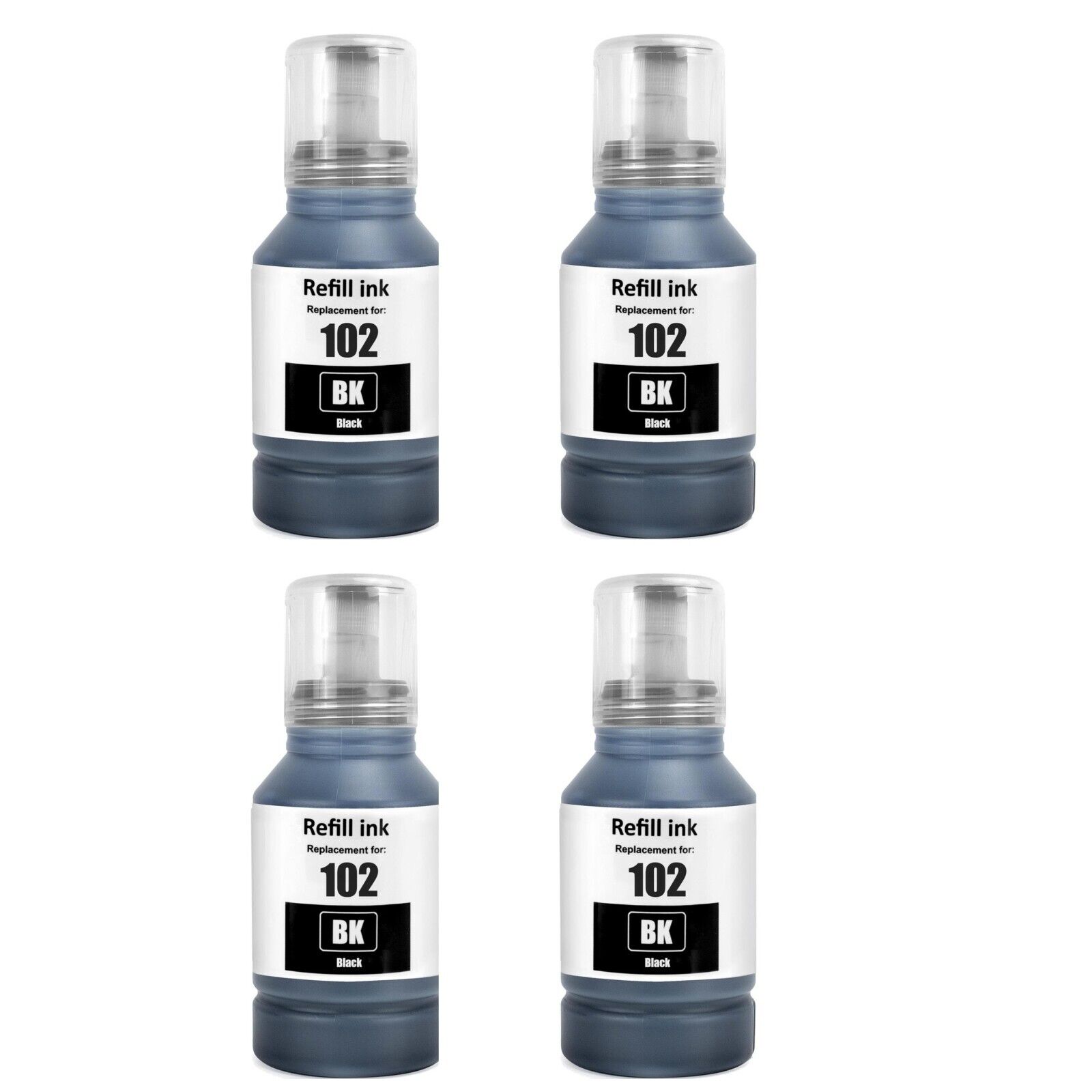 Non-OEM Ink for Epson EcoTank ET-2851 Inkjet Printer refill 102 Bottle Black x 4