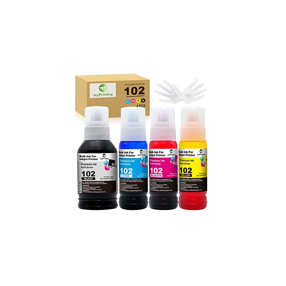 JoyPrinting 102 Ink Replacement for Epson 102 Ink Bottle Refills Compatible with Epson EcoTank ET-2750 ET-2700 ET-2756 ET-2850 ET-2856 ET-2851 ET-3700