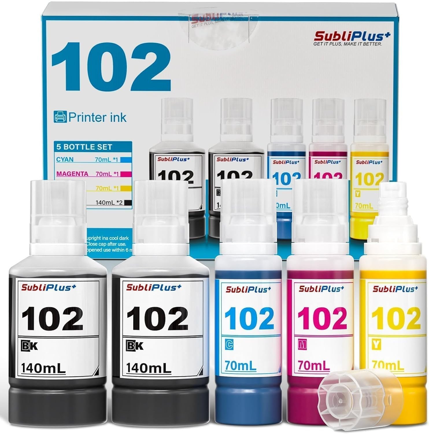 102 Ink Refill Bottles Multipack, Replacement Compatible for Epson Eco Tank ET-15000 ET-2700 ET-2750 ET-2751 ET-2756 ET-2850 ET-2851 ET-2856 ET-3700 ET-3750 ET-3850 ET-4750 ET-4850 ET-4856, 5-Pack