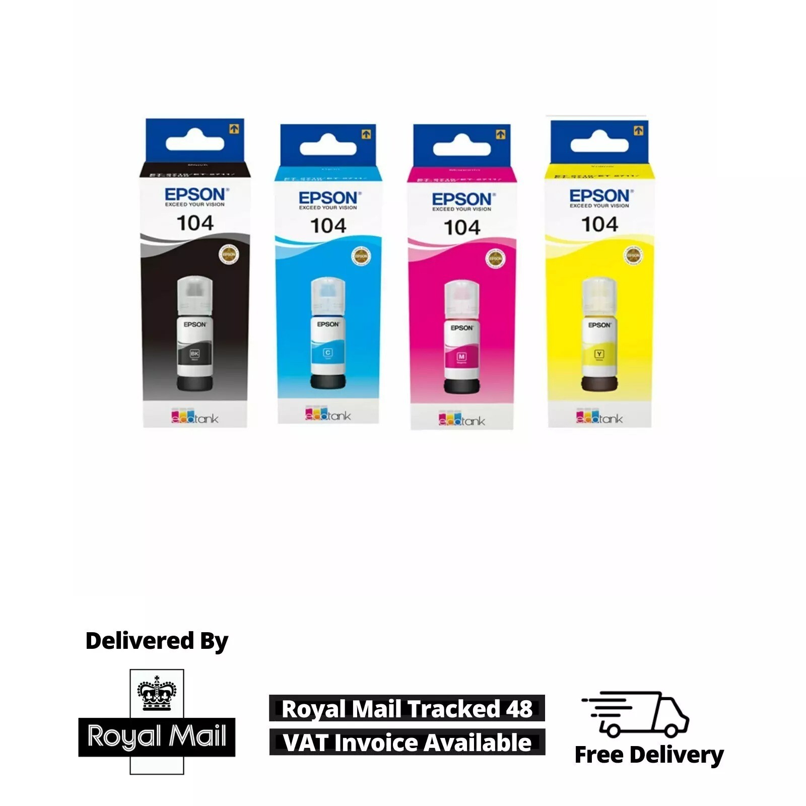 Genuine Epson 104 Ecotank Ink Bottle Refill Full Set for ET-2710 ET-2711 ET-4700