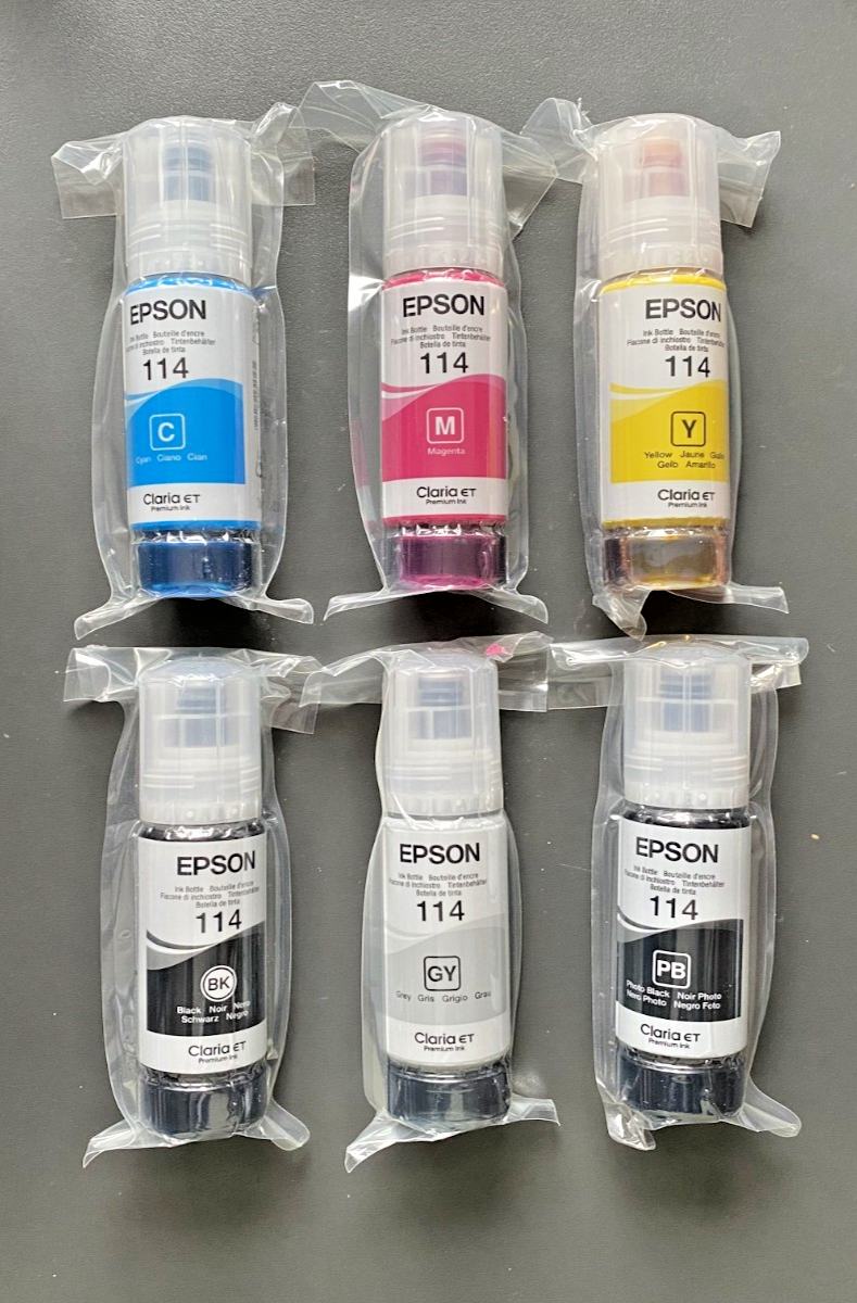 Genuine Epson 114 Ink Bottles, CMYK+PBK+GY Ink Sets for Ecotank ET-8500 LOT