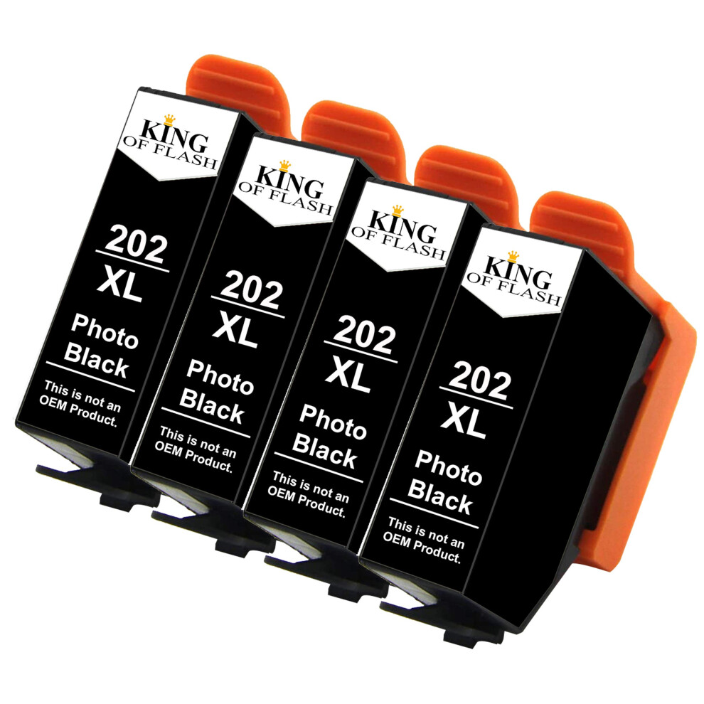 (4 Photo Black) Replacement for Epson 202XL 202 ink Cartridges for XP-6100 XP-6000 XP-6001 XP-6005 Photo Black Cyan Magenta Yellow