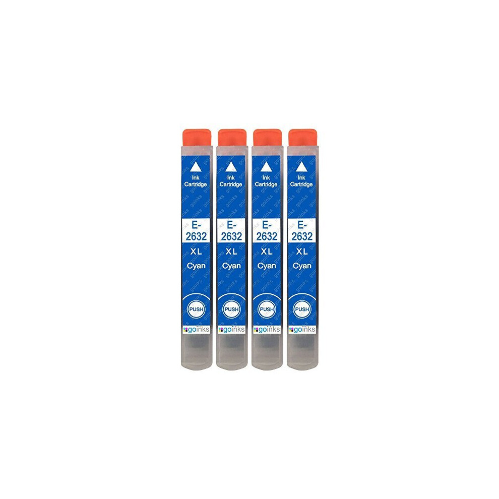Go Inks 4 Cyan Ink Cartridges to replace Epson T2632 (26XL) Compatible/non-OEM