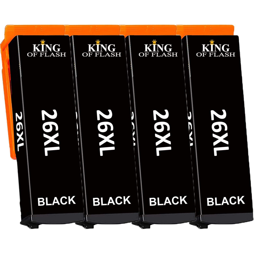 (4 Black) Replacement for Epson 26 26XL ink Cartridges for XP-620 XP-520 XP-610 XP-605 XP-510 XP-800 XP-600 XP-615 XP-700 XP-710 XP-720 XP-810 XP-820