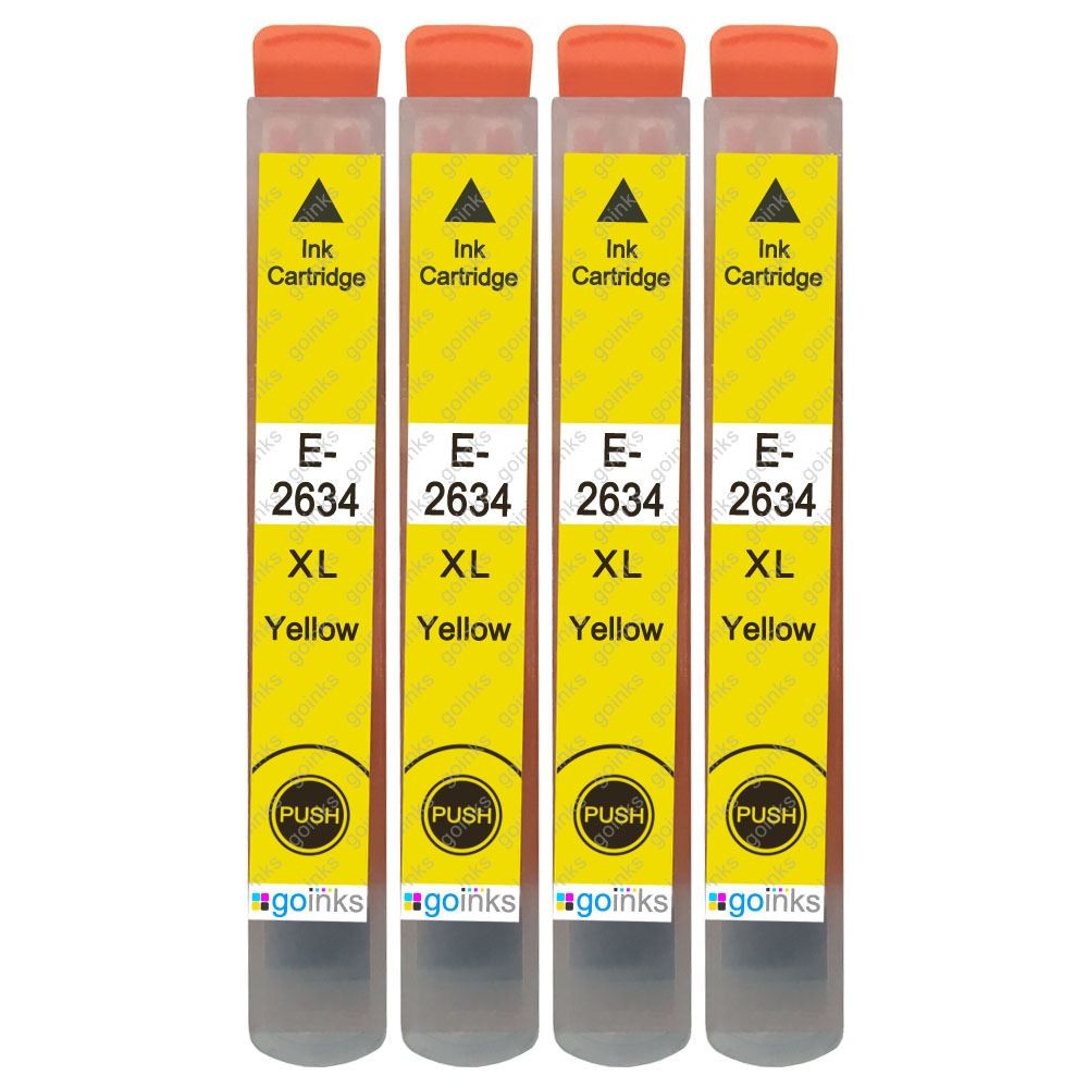 4 Yellow Printer Ink Cartridges to replace Epson T2634 (26XL) non-OEM/Compatible