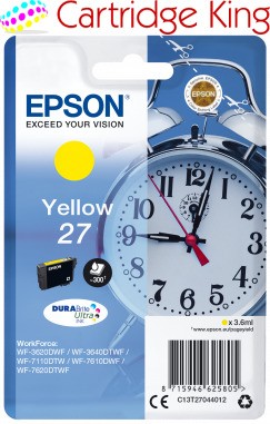 Epson Alarm Clock Singlepack Yellow 27 Durabrite Ultra Ink. Colour Ink Type: Pig