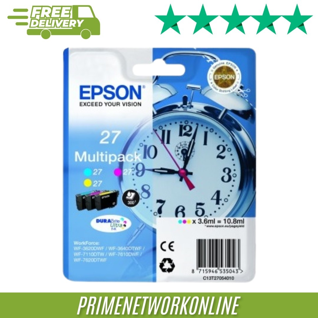 7 Genuine Original Epson 27 Ink Cartridges Joblot - Black Yellow Cyan