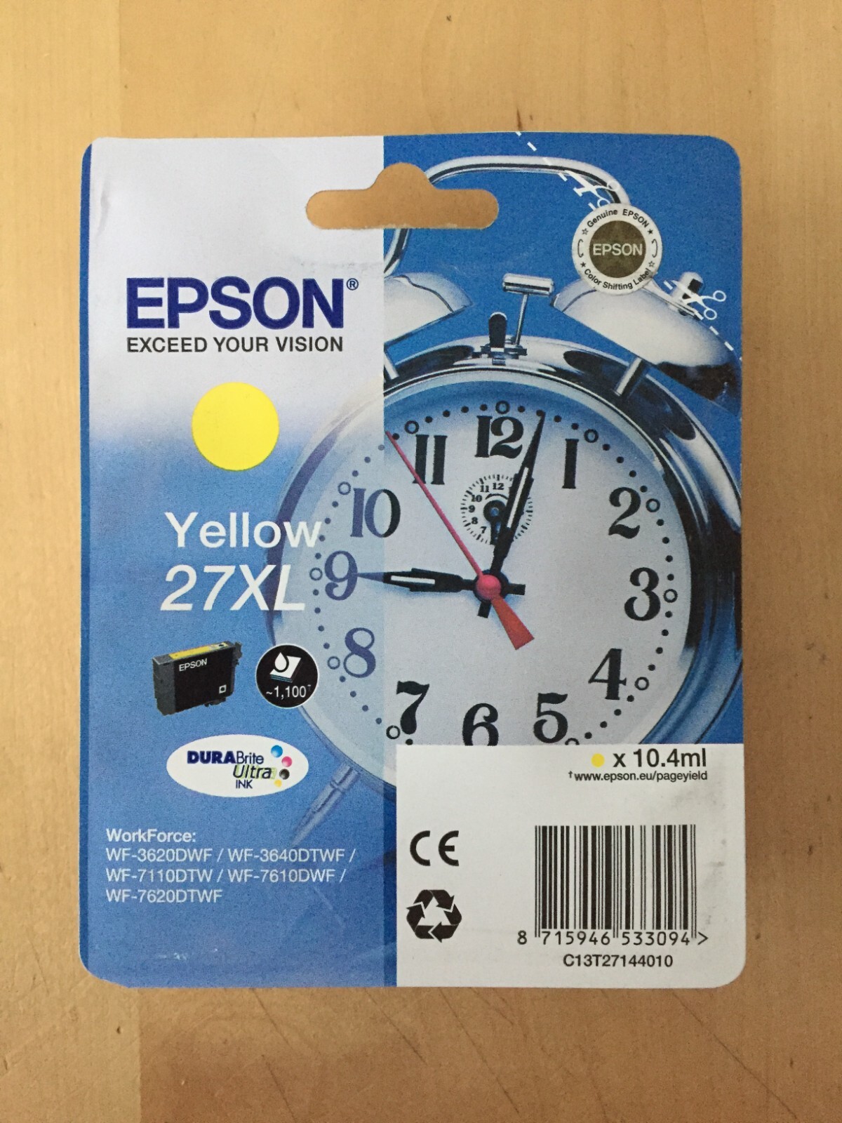 Genuine Epson 27XL Yellow Cartridge Original Alarm Clock OEM Ink New 2019