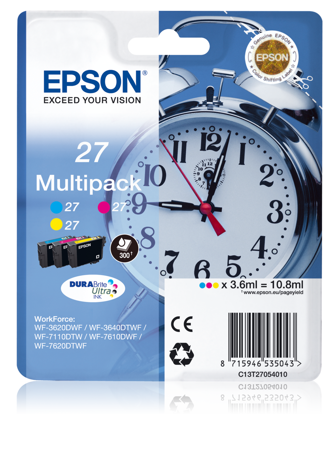 Epson Multipack 27XL Alarm Clock, Original XL Ink Cartridges High Capacity, Cyan, Magenta, Yellow, WF-3620DWF/WF-3640DTWF/WF-7110D