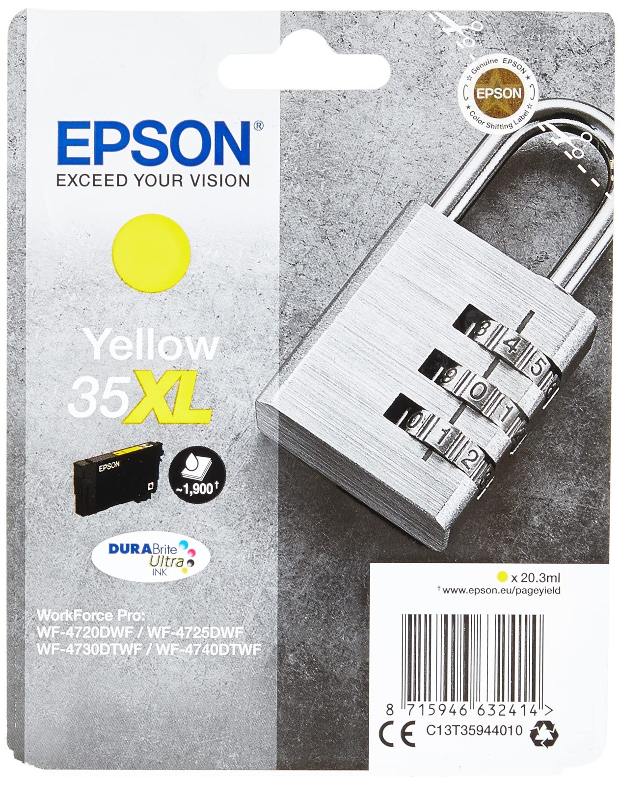 Epson 35XL Yellow Padlock High Yield Genuine Ink, Claria Photo HD Ink Cartridge